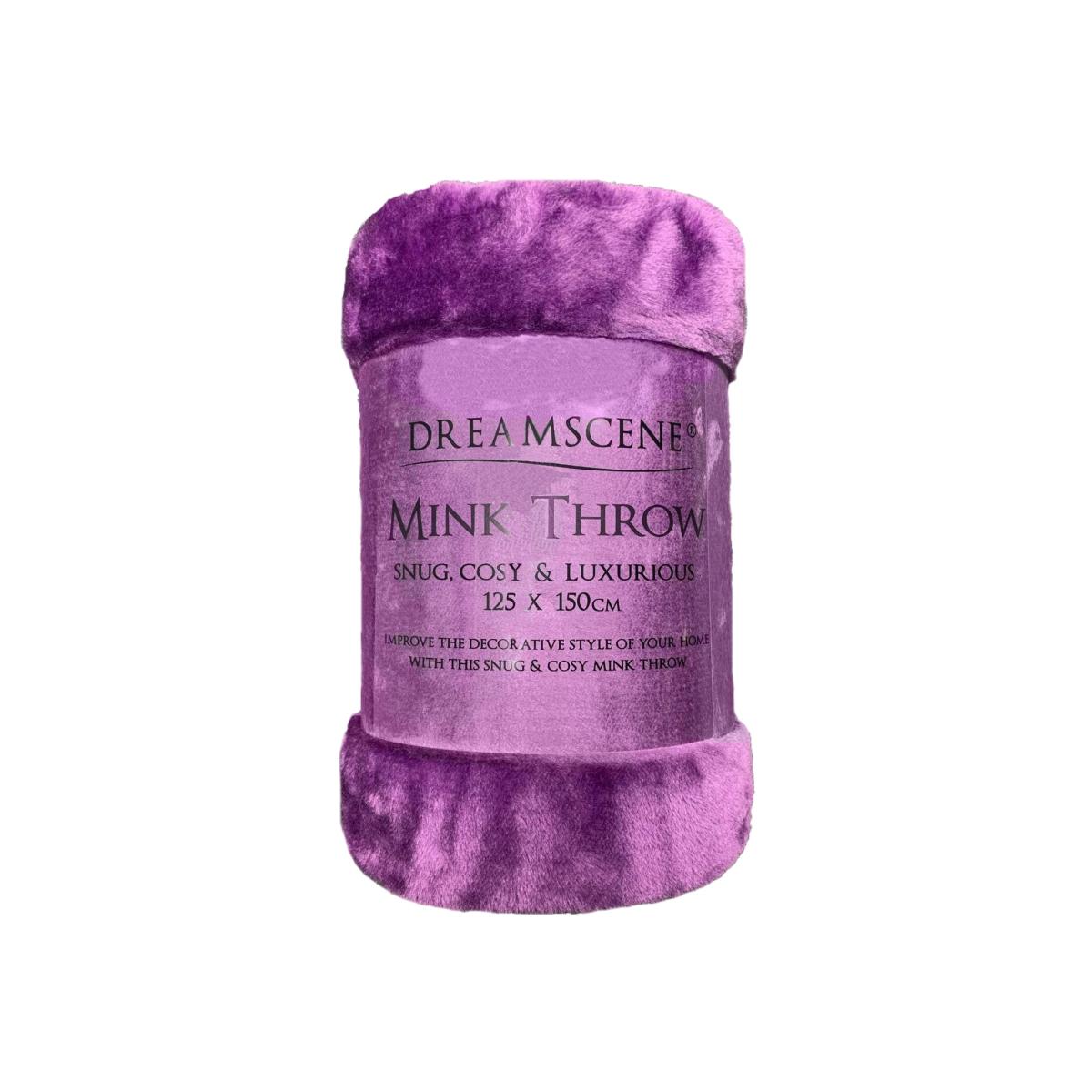 Dreamscene Mink Soft Faux Fur Throw Fleece Blanket - Purple / 150cm