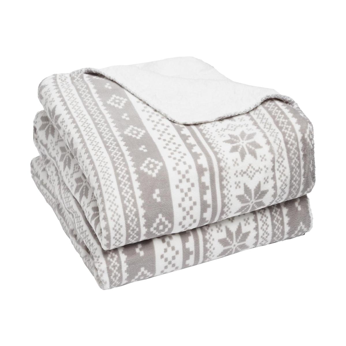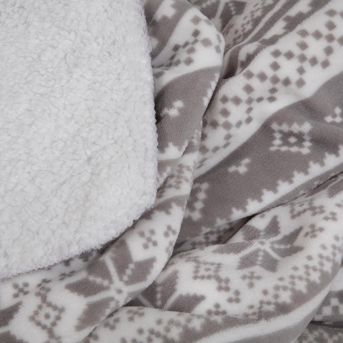 Dreamscene Nordic Print Sherpa Fleece Soft Throw Blanket - Silver
