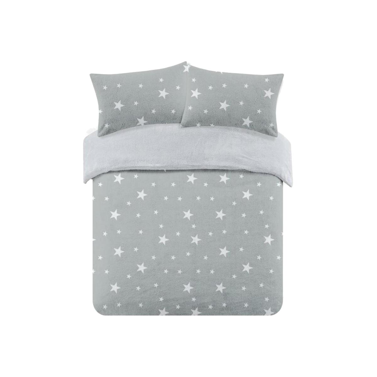 Get ready for those cold wintry nights with our star print teddy fleece duvet set, which will look great in any bedroom, and is a perfect way to give your room a vibrant, warm fresh look. This duvet set is made from super soft touch teddy fleece polyester, with a bold star pattern on the front and plain teddy on the reverse, making it comfortable and durable with added warmth and texture. This ultra soft easy-care bed linen will give your bedroom that modern feel and once washed it has great resistance to wrinkles, fading and shrinkage. This warm fleece teddy printed set includes a duvet cover and matching pillow case(s), all you need for a good nights sleep.