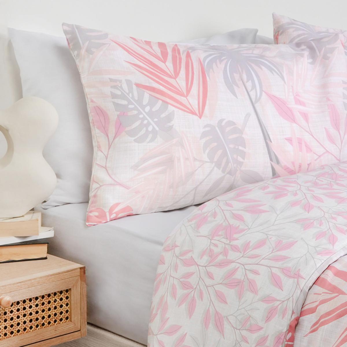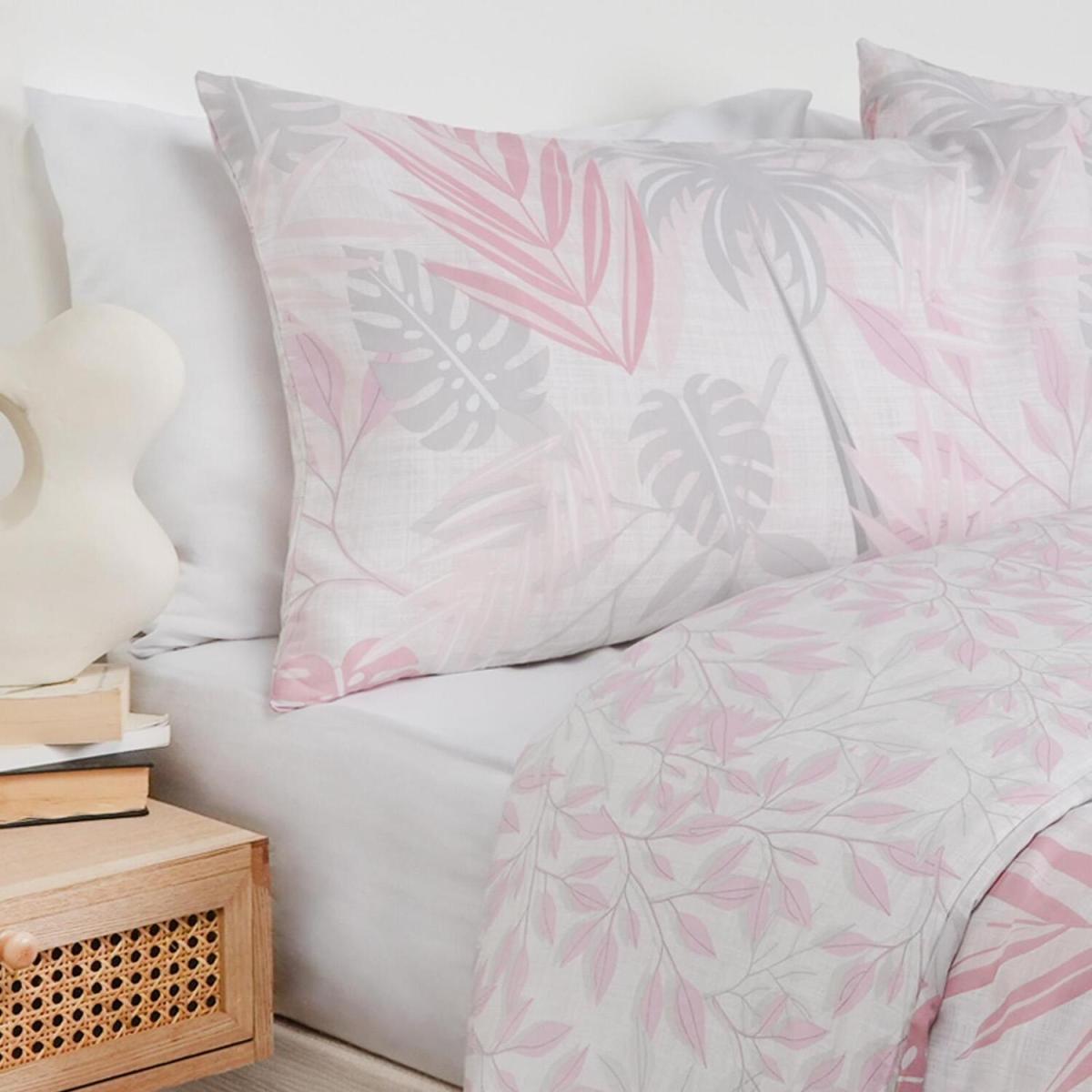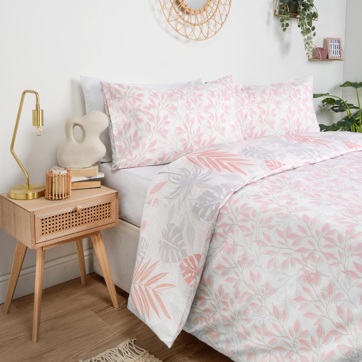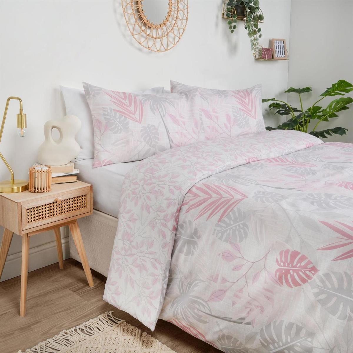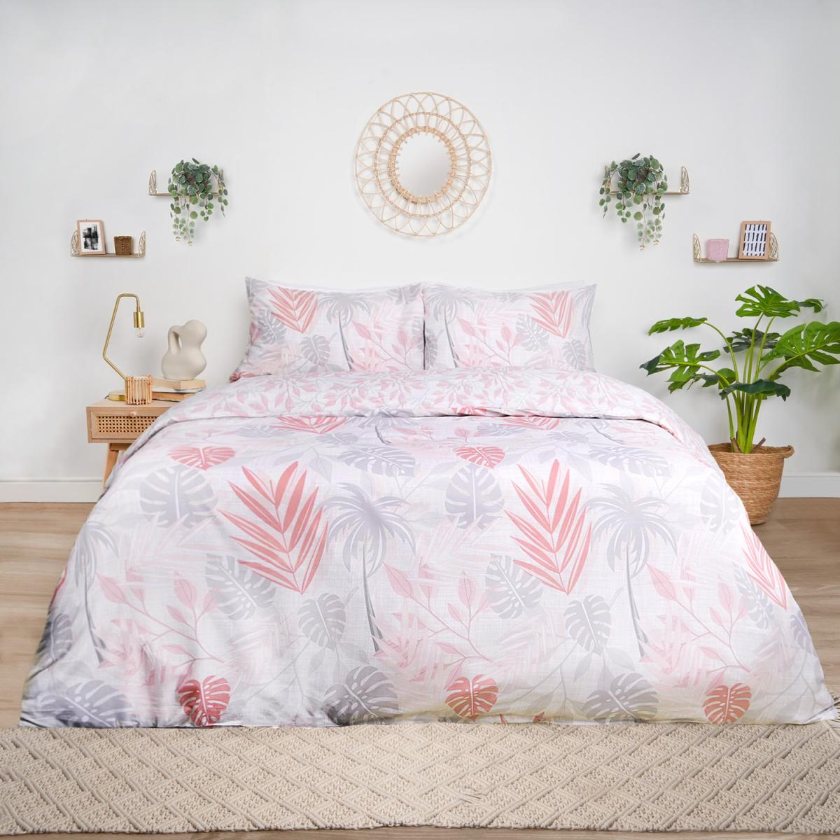 Dreamscene Tropical Print Duvet Cover Pillowcase Set - Blush Grey / Single