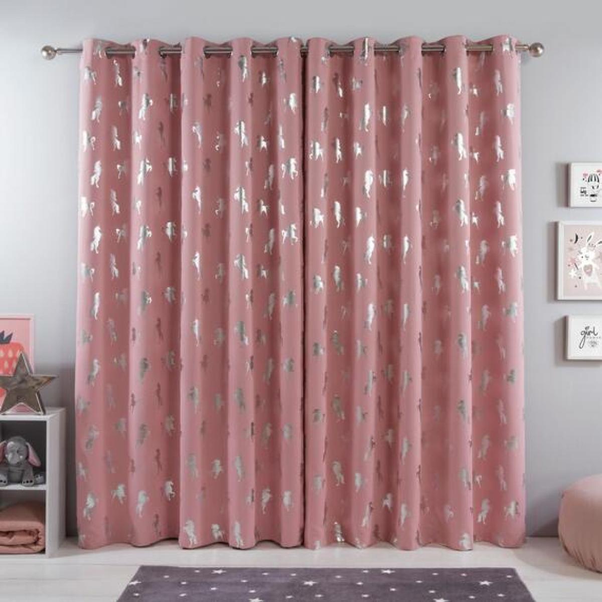 I love these unicorn blackout curtains for their blend of fun and function, especially with their playful pink colour and eye-catching metallic details. They work well in a children's bedroom or a playful living space, adding a touch of whimsy while offering practical blackout benefits - perfect for restful sleep and light control. For styling, consider pairing with soft pastel tones, plush cushions, or even unicorn-themed accessories to create a cohesive look. They're versatile enough to complement both contemporary and playful interiors, making them a practical statement piece that combines practicality with a dash of charm.