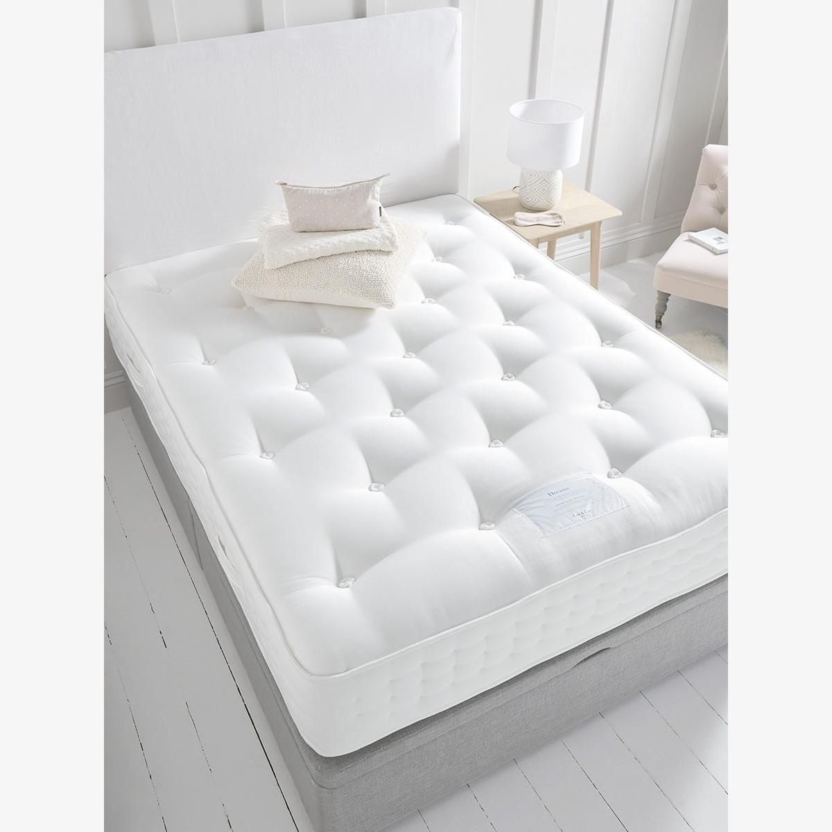 Few things in life are more important than a goodnight’s sleep and our luxurious made to order mattresses are here to provide comfort and support all night long. Filled with a warm and springy layer of pure new wool, and featuring 1400 pockets, butterfly support and covered in 100% viscose, this Dreamy mattress offers excellent medium-firm support. Traditionally hand crafted in the United Kingdom this mattress is available in four sizes.