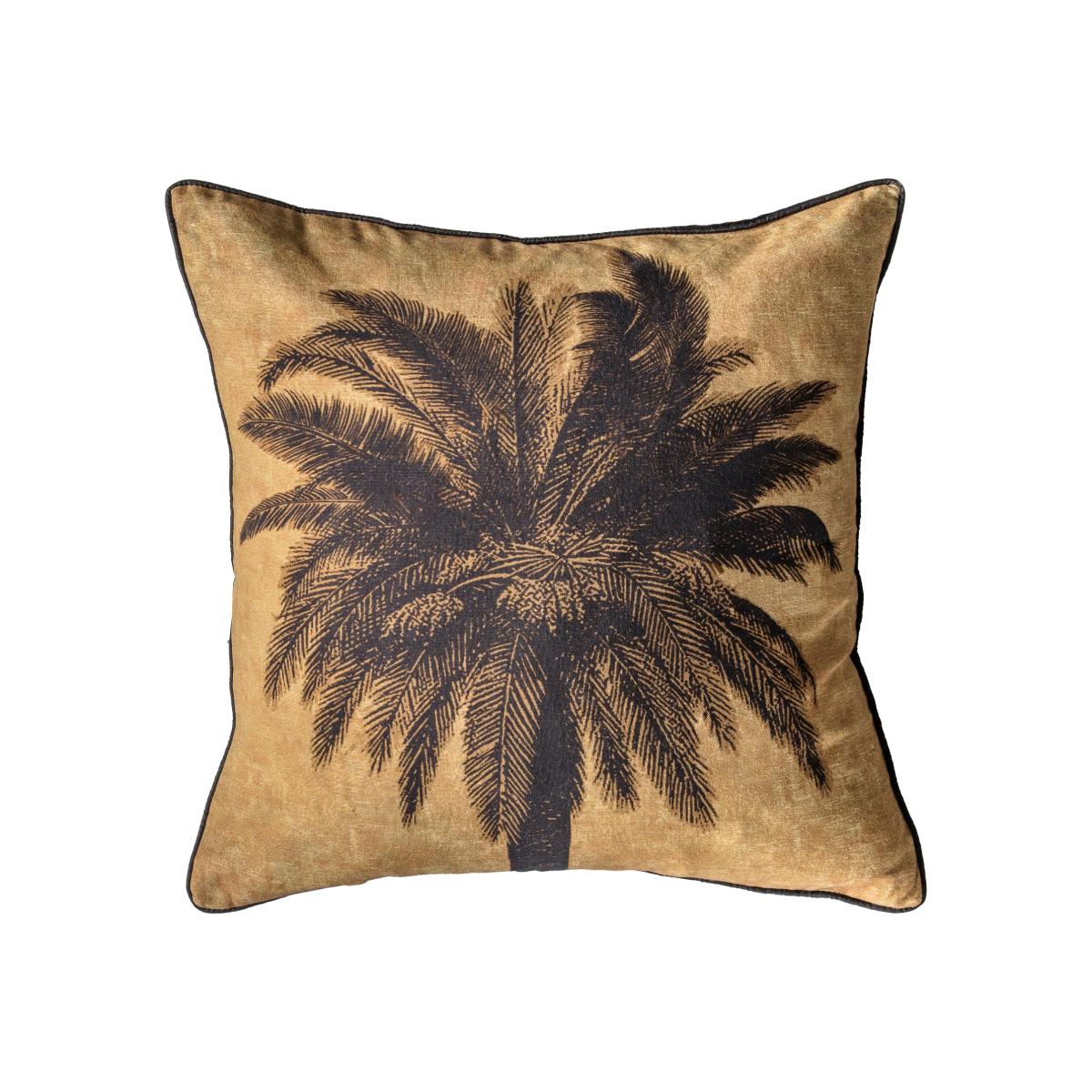 Transport your space to an exotic delight with the Dreamy Palma Cushion, featuring a palm tree silhouette design on a sunset inspired sandy base. This simple and effective design creates the perfect colour scheme to suit a range of home decors and a sumptuous black velvet piping and reverse fabric adds to the versatility.