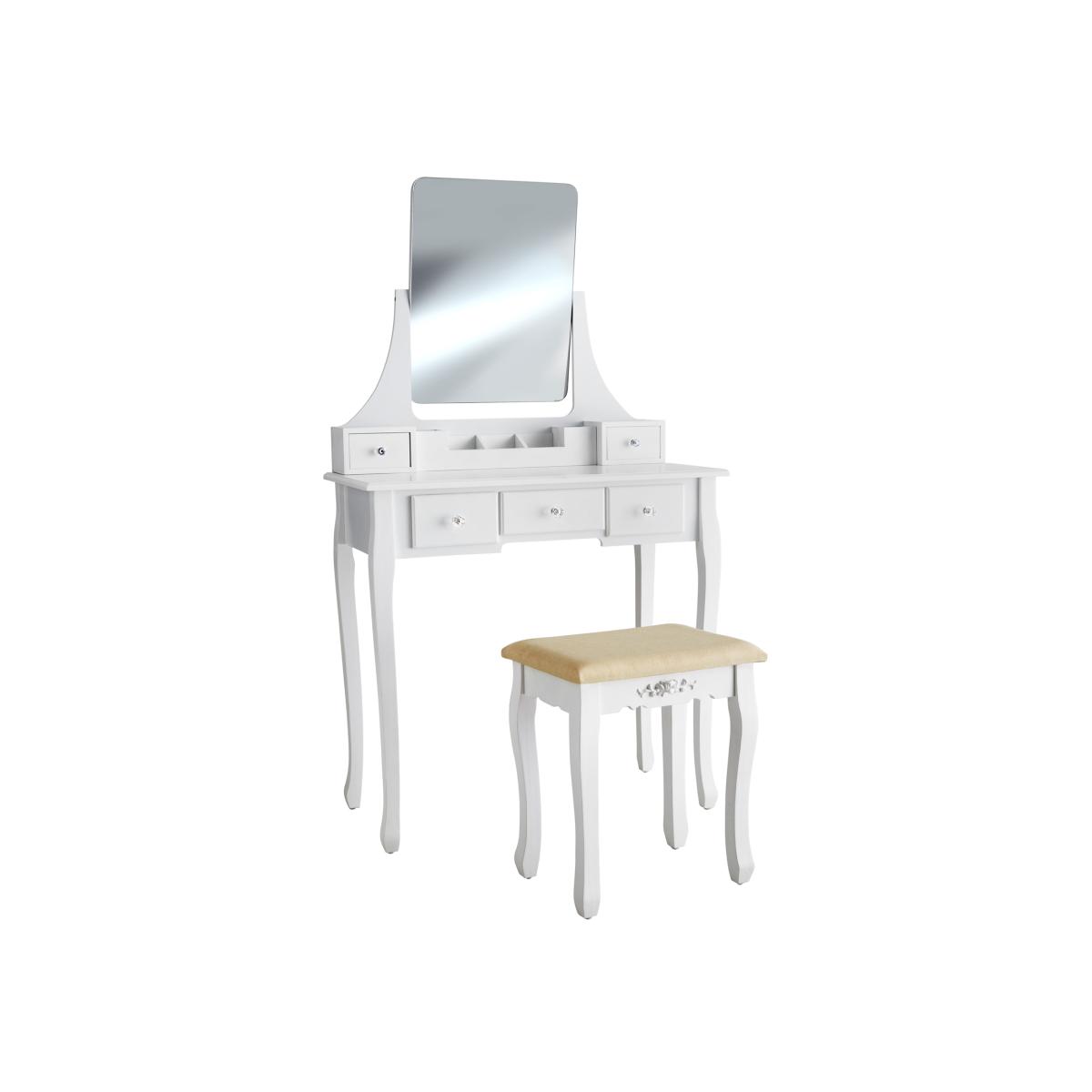 Start the day in style from the comfort of your own home with the modern and elegant dressing table Claire from Tectake. In front of the table's large, 360-degree swivelling mirror, you'll be able to perfectly style your make-up and hair. The desk features five drawers and a removable cosmetics storage compartment which are perfect to store your beauty products and ensure you have room for brushes and perfume, nail polish remover or even the right piece of jewellery. The solid construction of the furniture made of MDF boards and pine wood guarantees long-term use of this personal beauty salon. The dressing table Claire from Tectake combines beauty and style with practicality and would look perfect in any bedroom.