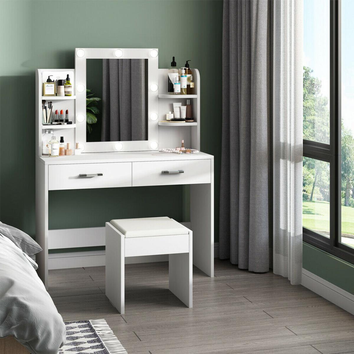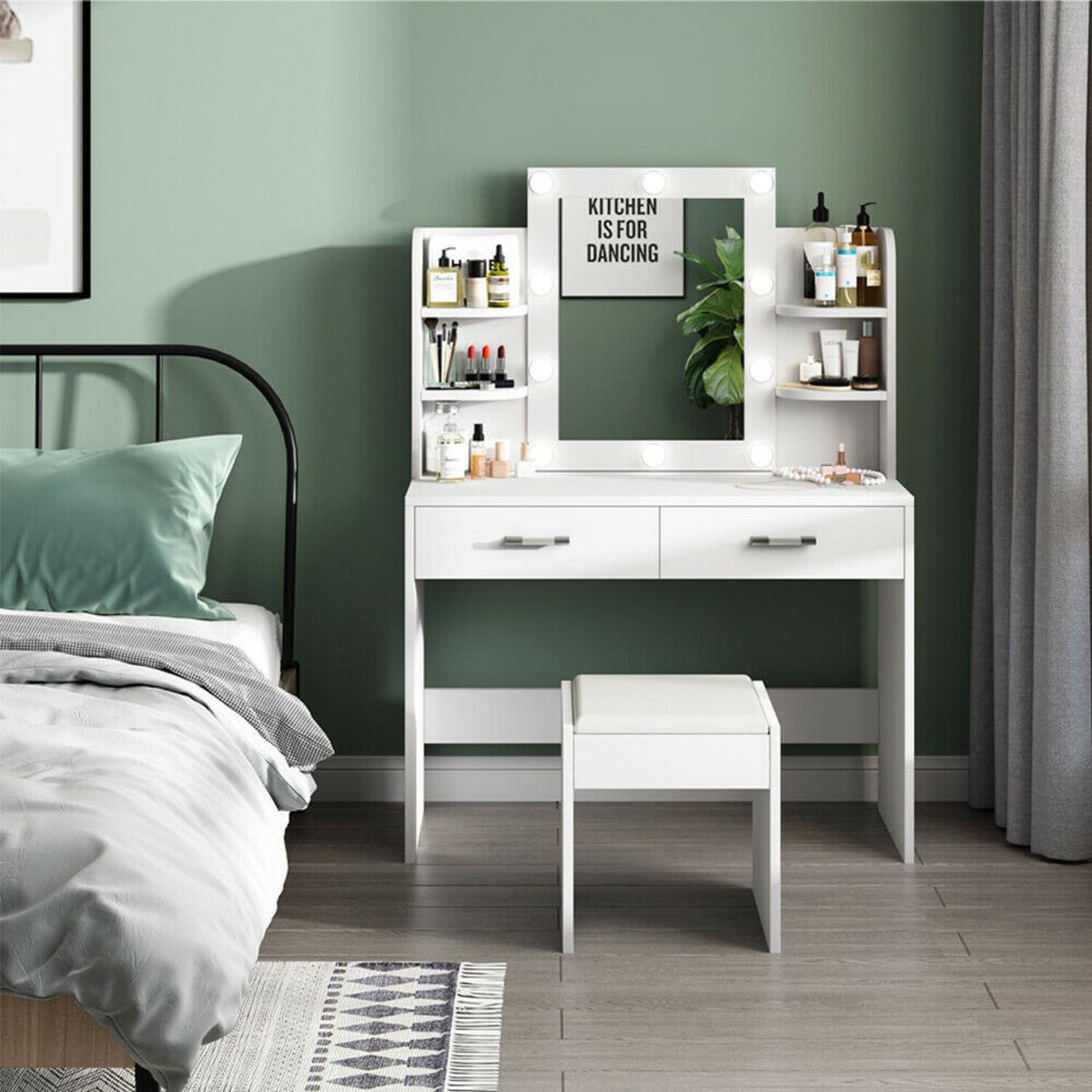 This padded stool provides additional comfort when applying makeup. Built in Sturdy Construction, stays stable and durable for long time. Made of MDF and Chipboard, easy to clean and maintain daily.