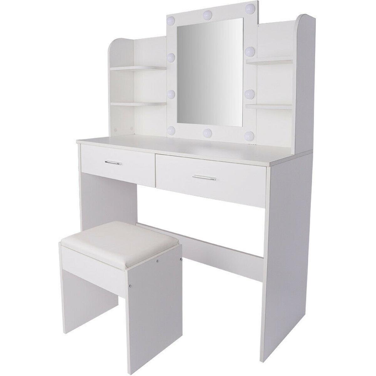 Dressing Table Organiser Set 2 Drawers Dressing Desk Mirror with RGB LED Lights - white