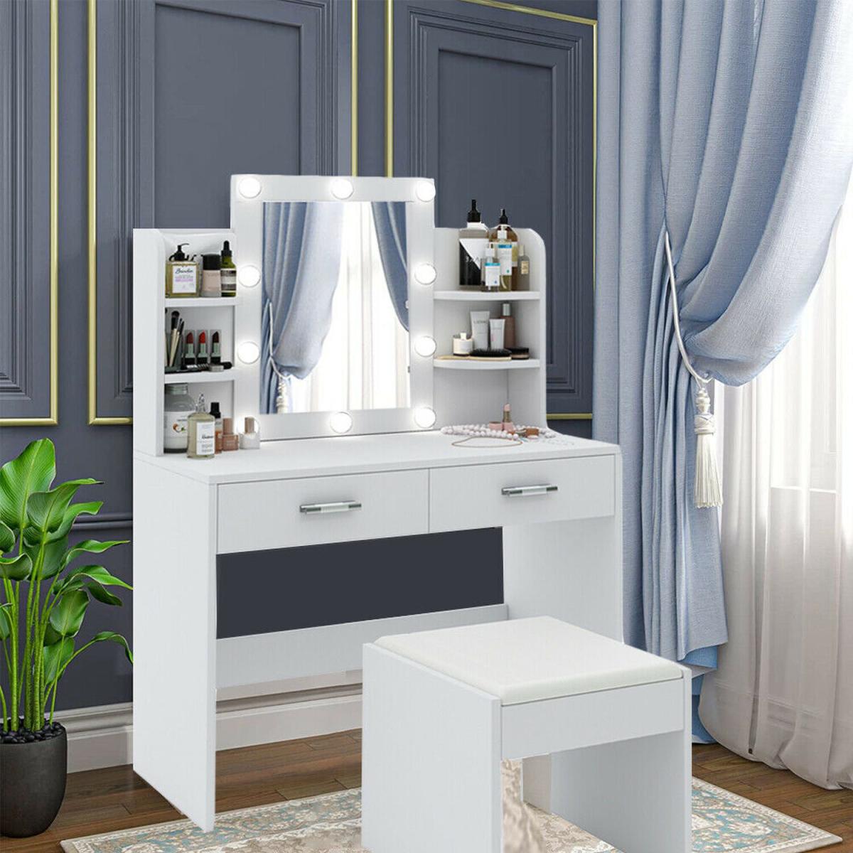 I really like this dressing table organiser set because it combines practicality with a sleek, modern look. The two drawers help keep essentials neatly tucked away, while the built-in RGB LED lights add a contemporary touch that’s perfect for a variety of interiors, from minimalist to more eclectic schemes. It works particularly well in using space efficiently in smaller bedrooms or dressing areas, and the white finish adds a fresh, clean vibe that can easily complement other colour palettes. For styling, consider adding some small decorative trays or organisational boxes inside the drawers to keep makeup and accessories tidy, and pair it with a soft, neutral or pastel-toned chair or stool to soften the overall look. This piece is versatile and functional, making it a great choice for anyone wanting a stylish yet practical dressing spot.