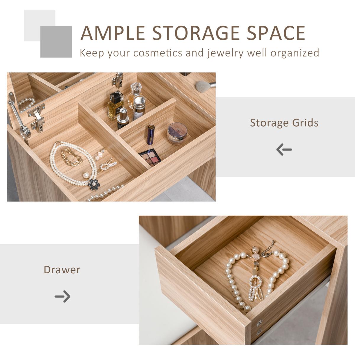 I love this dressing table set with mirror for its sleek, natural look and practicality. The wood grain finish makes it versatile-perfect in modern, Scandi, or even classic interiors-adding warmth without overpowering the space. It’s especially effective in smaller or neutrally styled rooms where a light, airy feel is desired. Practical styling tips include keeping the surface uncluttered with minimal accessories and using softly coloured or matte finish organisers to enhance the natural aesthetic. It works well paired with a matching stool, making it functional yet visually cohesive. This piece is a good option for creating a neat, calm dressing area without sacrificing style.
