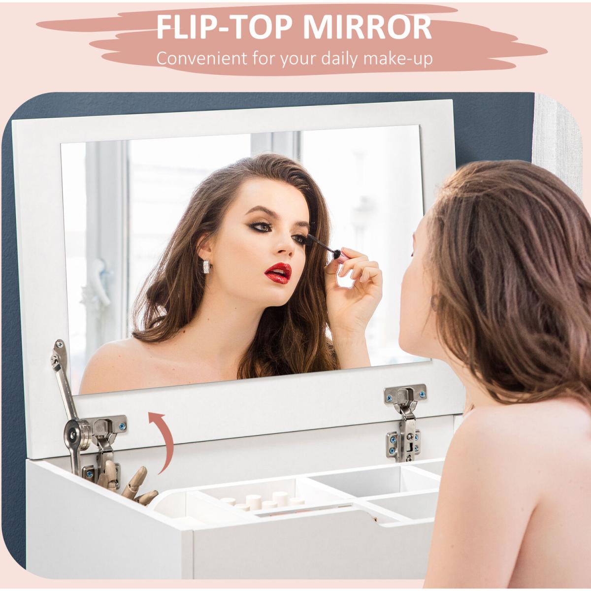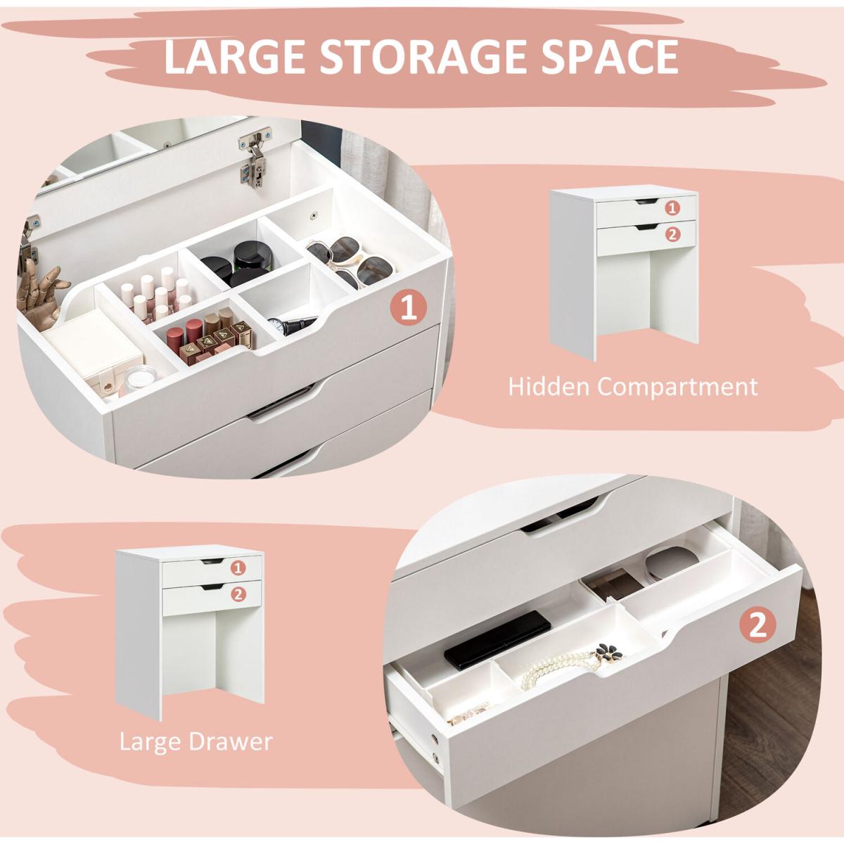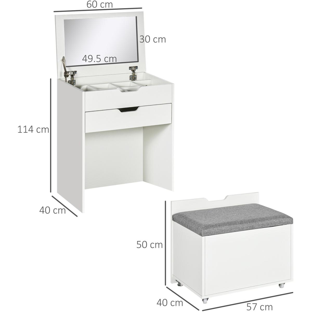 Dressing Table with Flip-up Mirror and Storage Stool - White