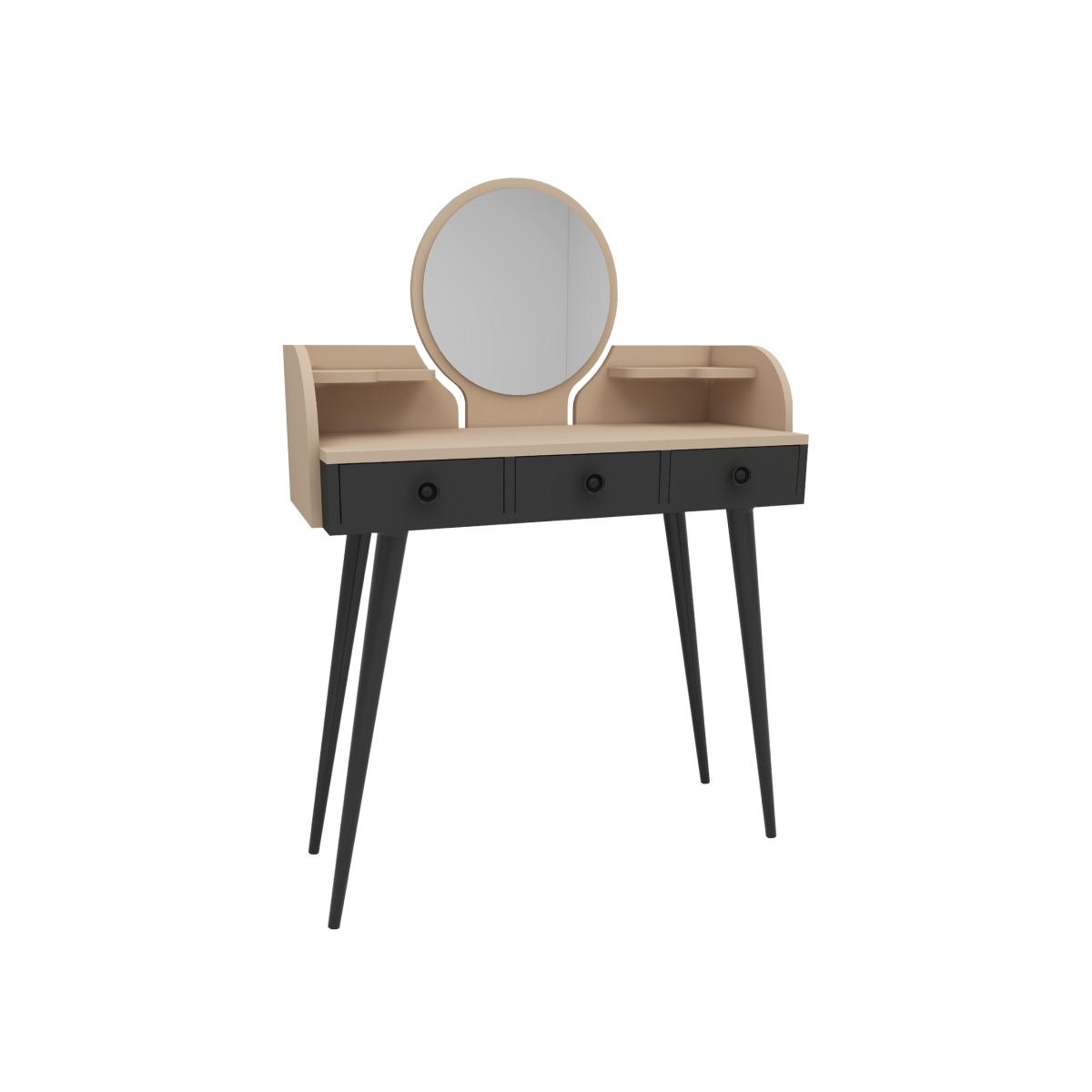 MATERIAL The makeup table is made of an 18 mm thick quality melamine-coated particleboard. The manufactured wood surface is water-resistant to some extent and the edges are banded with PVC edge banding tape. First-class assemblyinstallation hardware and accessories are used. Our products are produced from certified raw materials that do not contain carcinogenic substances and comply with European Union health norms. CLEANING You can clean your furniture with a dry cloth. Avoid prolonged contact of your product with moisture and water. ASSEMBLY The product will be delivered to the customer in the original package as disassembled. It is designed to be assembled by the customer using a power drill and screwdriver. Assembly instructions and installation hardware are included in the box. Product parts are numbered with stickers per the assembly guide for fast and error-free installation.