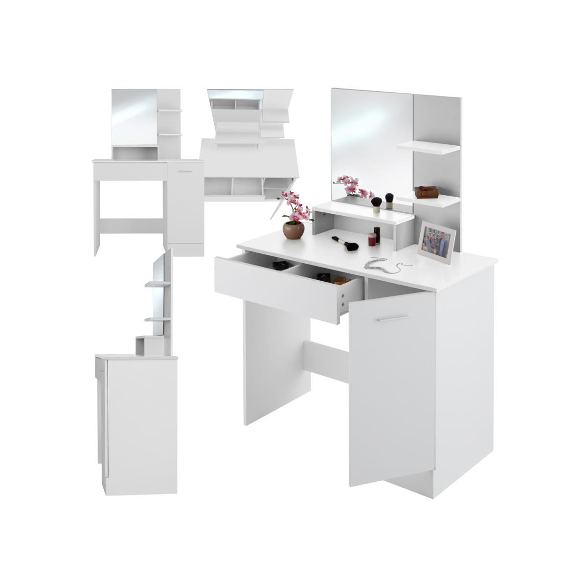 With the dressing table 'Zoe' by tectake, you'll enjoy every moment of your beauty routine. Make-up and hairstyles can be perfectly created in front of the tables large mirror. The melamine coating gives the sturdy construction an easy-care and scratch-resistant surface. The furniture fits into any bedroom and the storage areas are perfect for a wide range of beauty products. With a matching stool you'll have the perfect place to relax whilst you get ready. Add this dressing table to your room at home and you'll be set to start every day the right way. Enhance your bedroom or dressing room with this elegant white dressing table. Perfect for adding both style and functionality to your home furniture, this versatile piece features spacious drawers for convenient storage of your beauty essentials and accessories. Designed to complement any decor, this table doubles as a chic console table for your room or a practical addition to your home. Pair it with your beds or other tables to create a seamless, stylish look. Upgrade your space with this beautiful and functional dressing table today! The dressing table Zoe by tectake is both visual highlight but also a practical piece of furniture that brings joy every day.