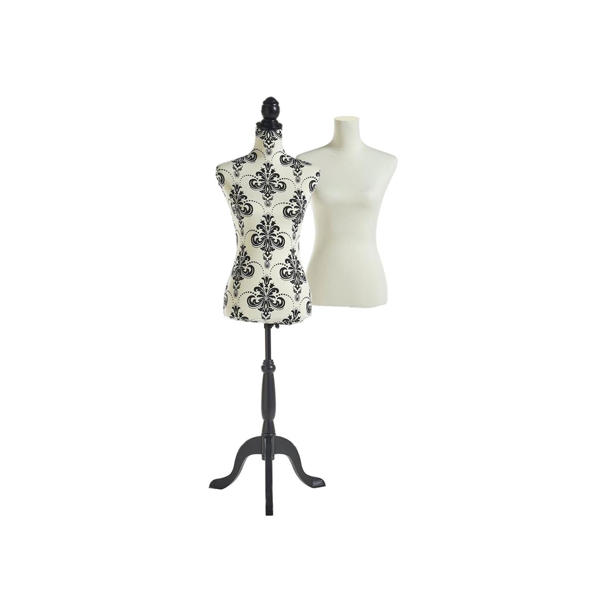 Turn your designs into reality and display outfits in all their glory with the Beautify Mannequin. Ideal for amateur and professional dress making, decoration or display, this multipurpose mannequin combines style and functionality. A great choice for fashion students, dressmakers, stylists, clothing stores, or anyone looking to add a glamorous touch to home decor. Robust body resists knocks and bumps, so you can pin clothing or fabric to the mannequin easily. Black variable height pole (adjustable between 130-168cm) will come in handy when making garments to the exactly the right length. Sturdy black tripod base ensures the mannequin offers superb stability (maximum weight capacity 5kg). Comes complete with two 100% polyester removable covers - one in plain white, the other in a timeless black damask print.