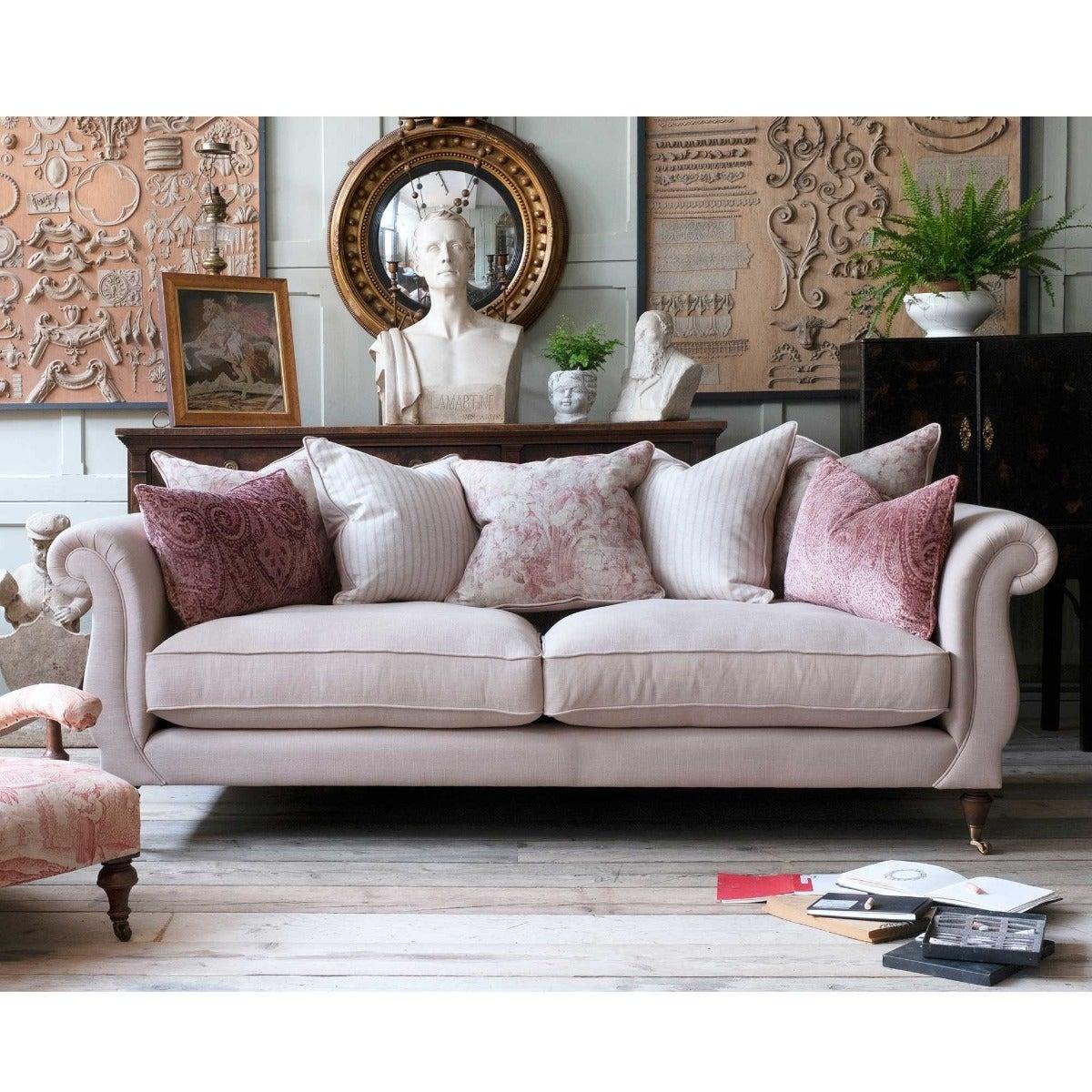 Design. The Atherton Pillow Back 4 Seater Sofa is a timeless piece that exudes grandeur. Inspired by Georgian and Victorian design and created to have modern attitude, the Atherton is a supremely elegant option that works well in larger spaces and provides the perfect amount of seating for relaxing or entertaining. Hand crafted and designed exclusively for Barker and Stonehouse, the Atherton will create a luxurious feel in your home. Available in a range of colours and including bolster and scatter cushions, the Atherton Pillow Back 4-Seater Sofa will be a joy for years to come.