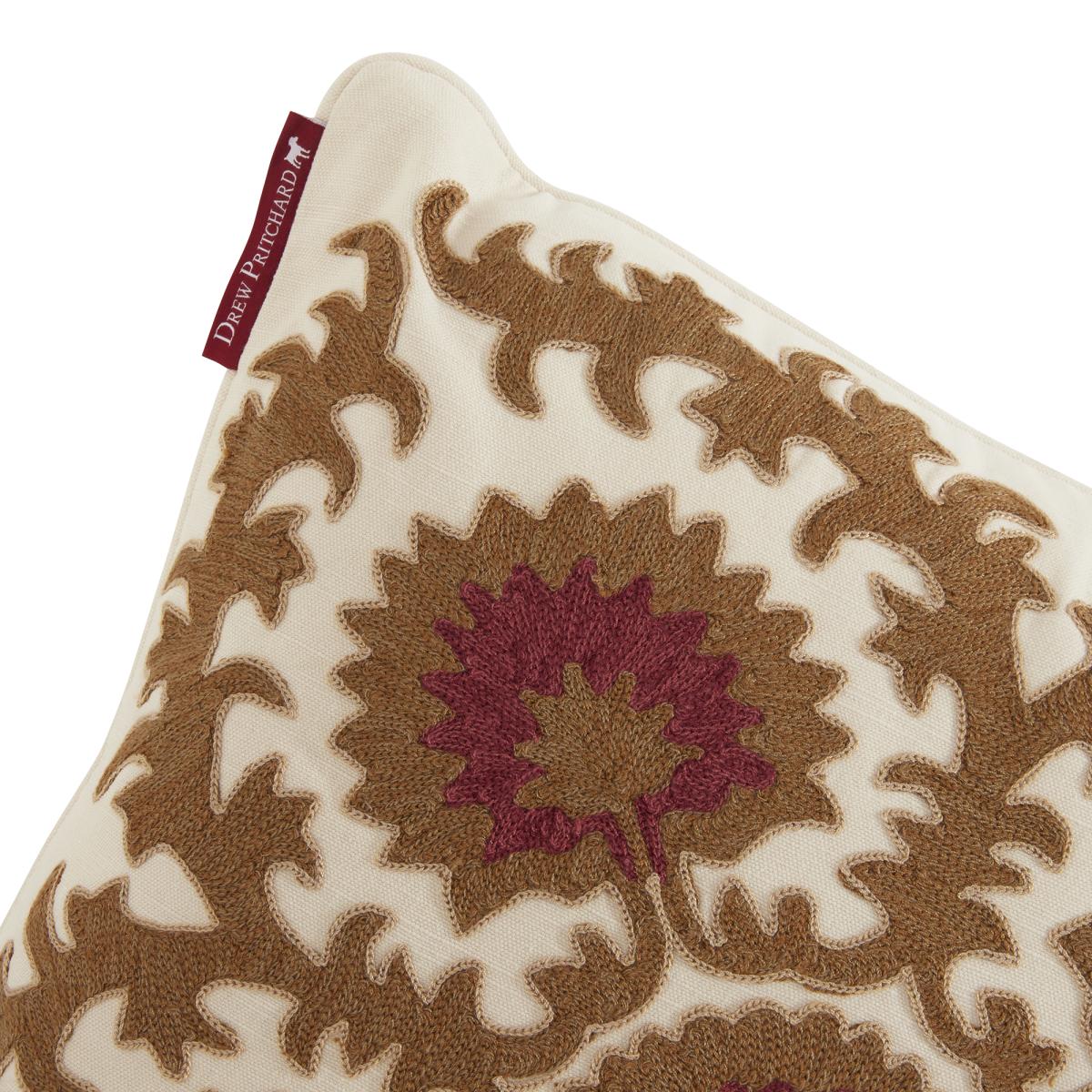 Drew Pritchard Vintage Embroidered Cushion, Neutral | Drew Pritchard