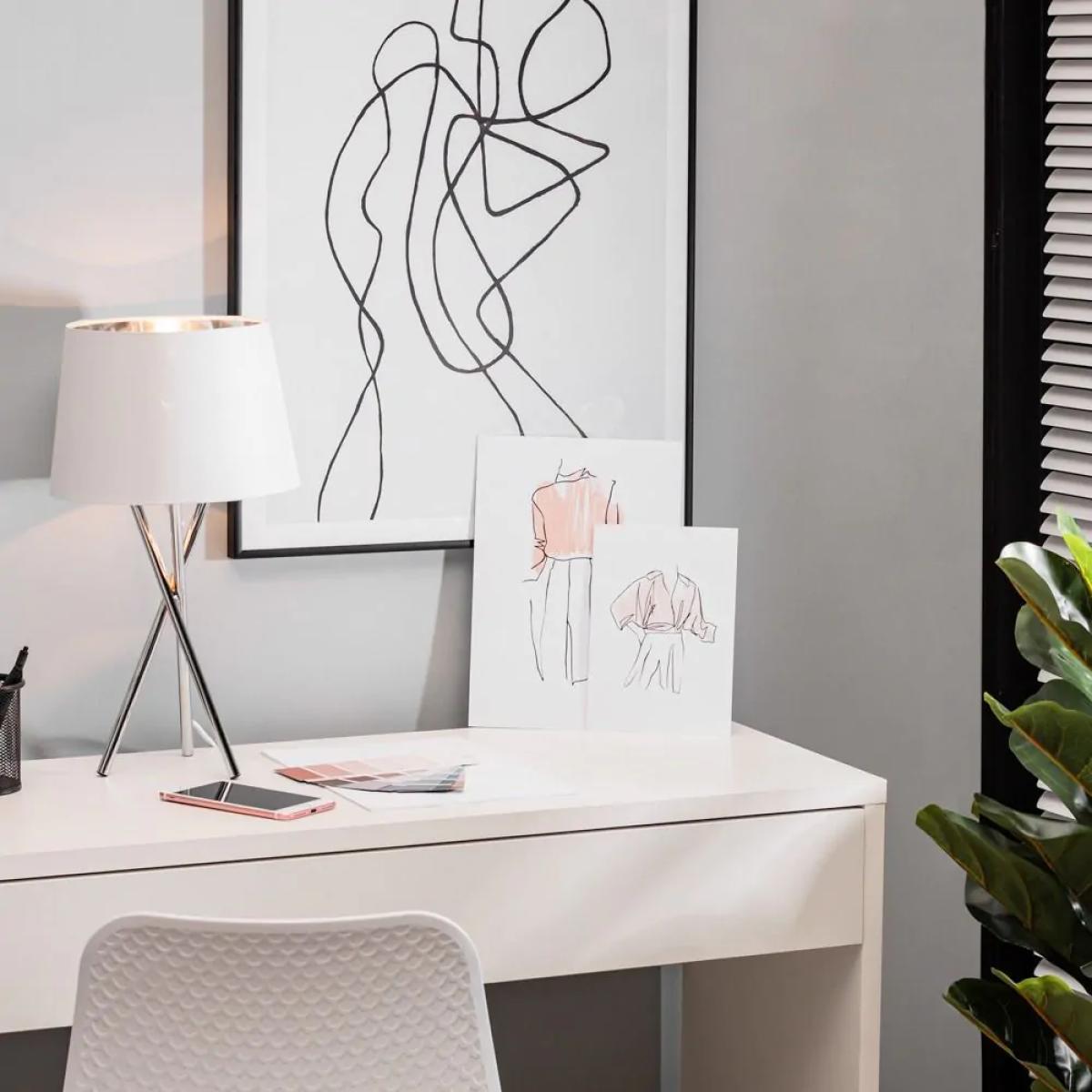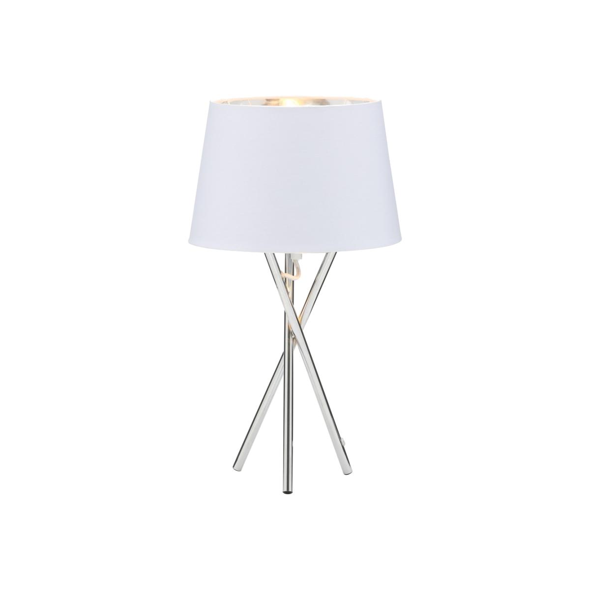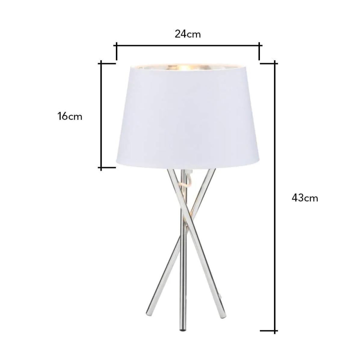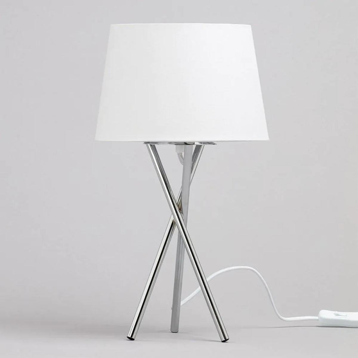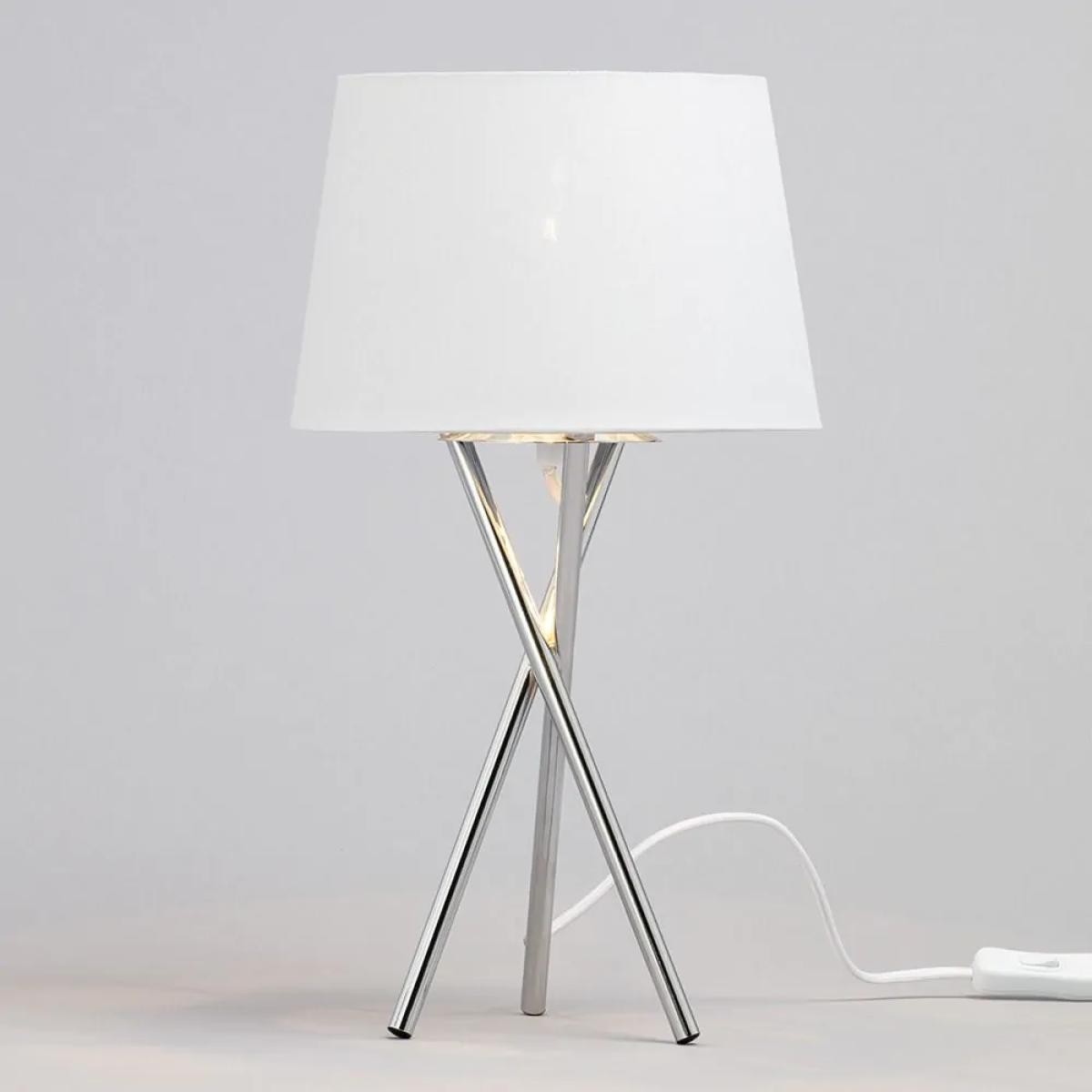 The Drey Table Light is a wonderful addition to your home’s interior lighting arrangements. Finished in Polished Chrome, the table lamp features 3 straight legs angling and overlapping one another to create a unique, abstract feature. Atop the three legs sits a clean, white shade from which the warm light diffuses through the fabric to create a much softer glow that provides a relaxing atmosphere in your spaces while opening the space up.