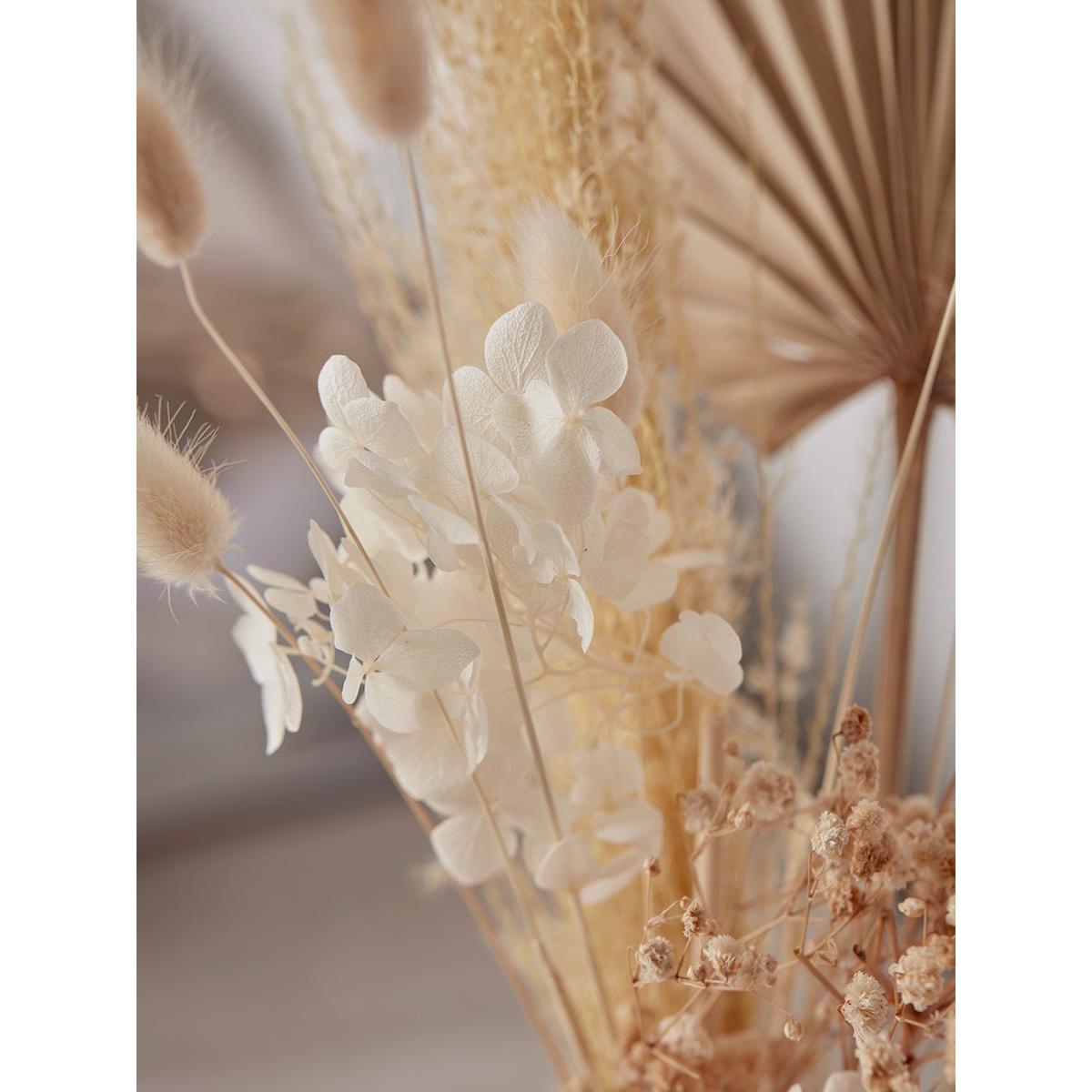 A charming bouquet of dried flowers, with a neutral palette, which includes grasses and seed heads for a calming textural display with which to elevate a favourite vase.