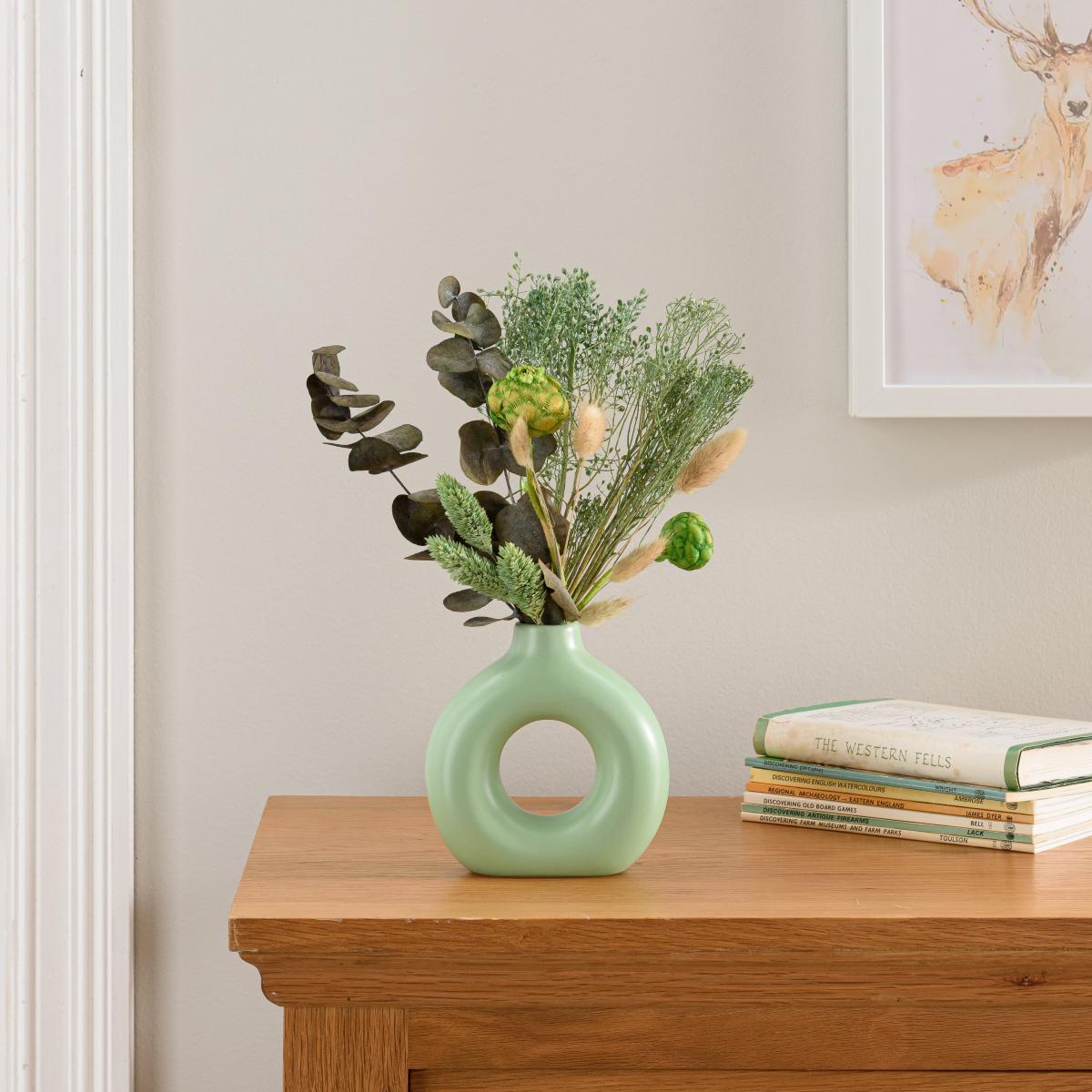 I love this small green bouquet for its versatile, contemporary look that works beautifully in most interiors. Its subtle, natural tones make it ideal for freshening up side tables, desks, or shelves without overwhelming the space. Because it’s artificial, it’s practical and low-maintenance - perfect for adding greenery where live plants might struggle late into the year or in low natural light. Styled in a minimalist vase or alongside other textured accents, it can bring a touch of nature indoors without the fuss. Practical tips include grouping it with other artificial greens for a fuller arrangement or using it to add a pop of colour to neutral schemes for a fresh, modern vibe.