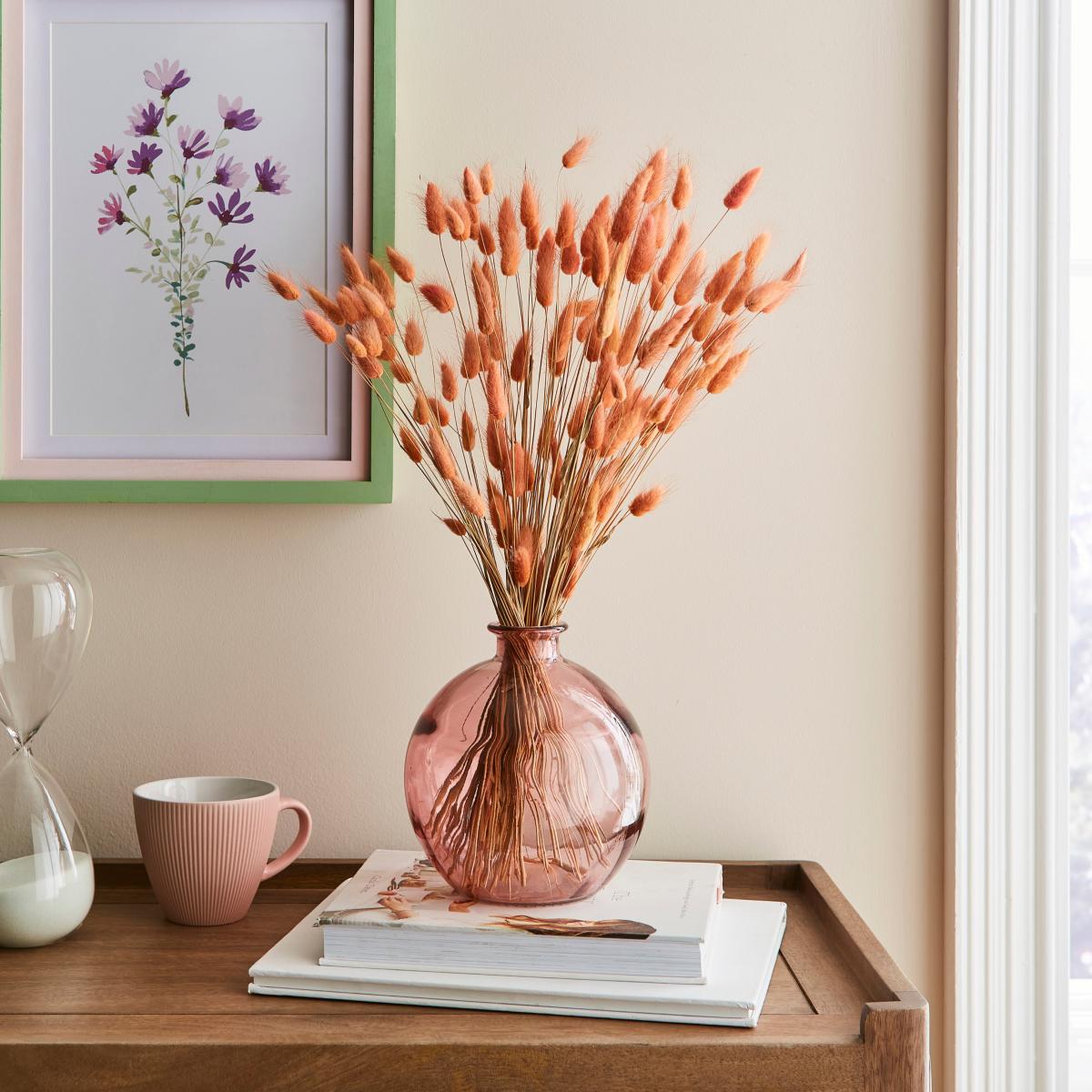 I love this little bunch because it adds a soft, natural touch to any interior without the upkeep of real plants. It works particularly well in cosy living rooms, bedrooms, or even minimalist kitchens where a hint of colour can lift the space. The pink hue is versatile enough to pair with neutral tones or add a pop of colour to more muted palettes. For practical styling, it looks great arranged in a simple vase on side tables or shelves, and because it’s faux, you can keep it looking fresh year-round without fuss. It’s an easy way to bring a bit of charm and softness into your home with minimal effort.