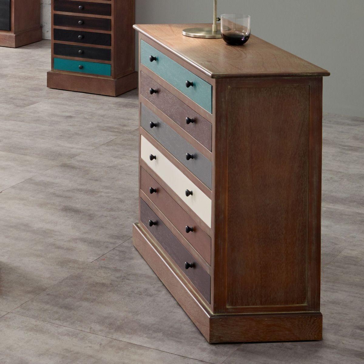 Driftwood 6 Drawer Pine Wood Multi Colour Unit. This Driftwood 6 Drawer Unit is beautifully crafted with a vintage distressed look. Full of character, this robust drawer unit will look great in traditional homes or adding some colour and character to modern homes.