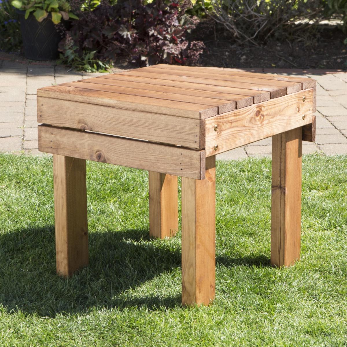 Charles Taylor Solid Wood Outdoor Drinks Table Boxed. This is constructed at our factory in the UK and manufactured from Solid Scandinavian Redwood. As the name implies, this timber grows in a cold climate. The slow growth associated with the low temperature produces a much denser, more robust wood which is perfect for outdoor use.