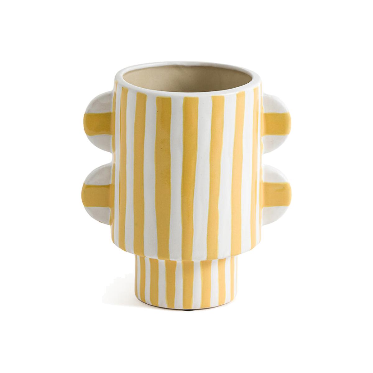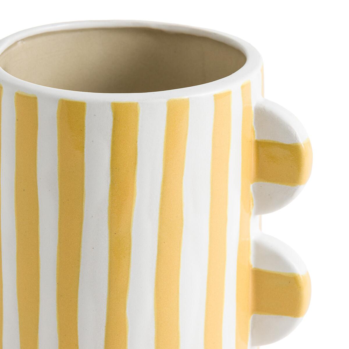 An energetic and contemporary touch. With its sunny yellow striped pattern and graphic design, the Drio ceramic vase energizes your decor. A signature design by La Redoute Interiors. Product Details • Painted earthenware • Yellow stripes on white background • Handles on the sides • Hand-crafted, each piece is unique: colours and dimensions may vary from product to product. Dimensions • Diameter: 10cm • Height: 25.5cm
