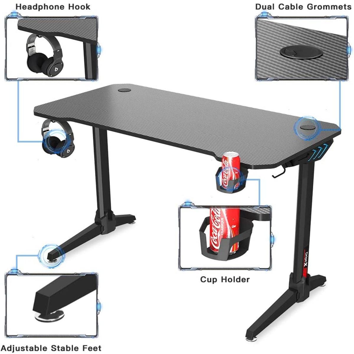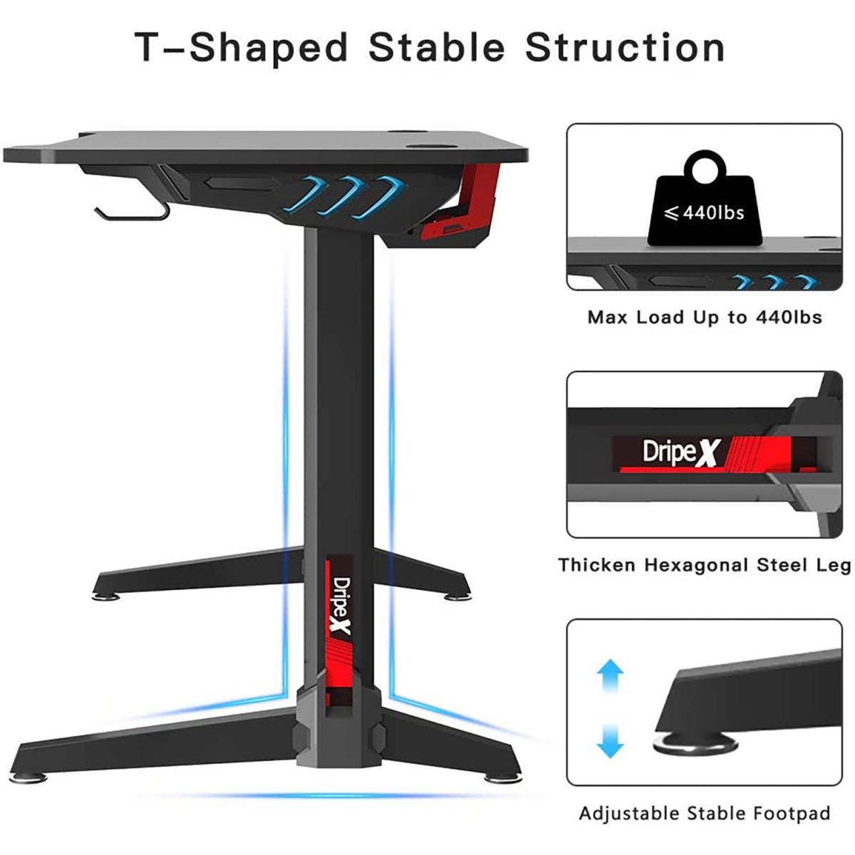 Dripex gaming table is designed to elevate your gaming experience. It comes with a convenient cup holder, headphone hook, storage basket and 2 cable management holes, keeping your gaming desk neat & tidy. Dripex gaming pc desk is crafted of 2 T-shaped steel legs and features a desktop thickness of 0.7 inches, it is finished off with a special scratch / wear resistant powdered coating that can stand a maximum load of 440 lbs. High quality materials make this desk excellent long-lasting furniture. Black exterior and convenient functions are perfect for both gaming and office use! It can also well serve as a home office desk, study table, office station, pc laptop table, etc. Adjustable foot pads can greatly protect the desk itself and prevent damage to the floor when you move the desk. With the understandable manual instructions and all necessary parts, you can easily install it. Dripex desks for gaming is backed up by 1-year warranty. If you have any questions, just feel free to contact us for help.
