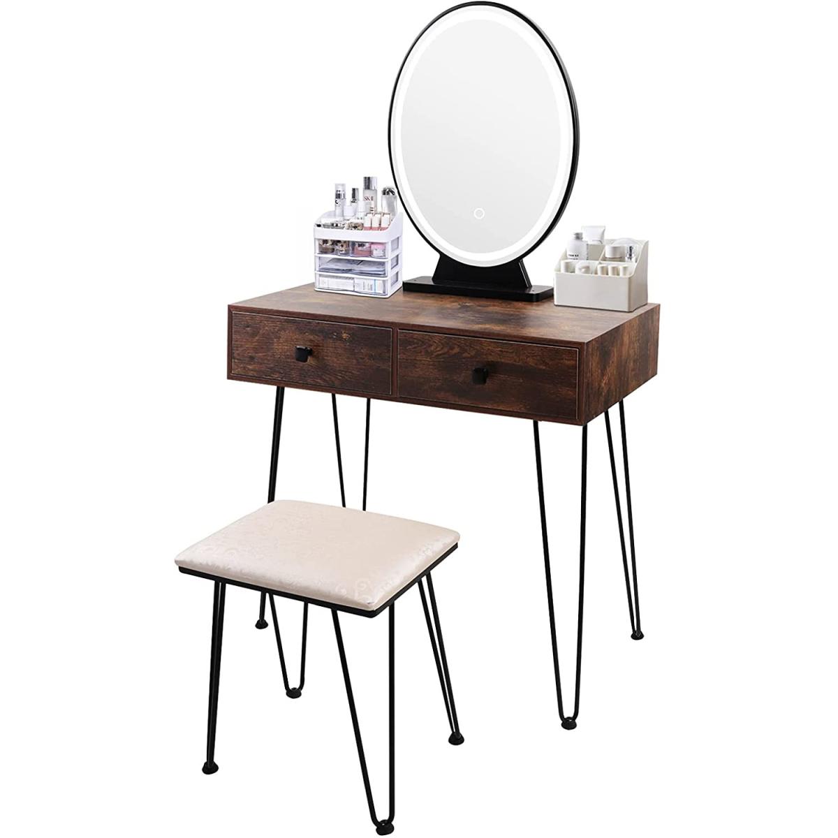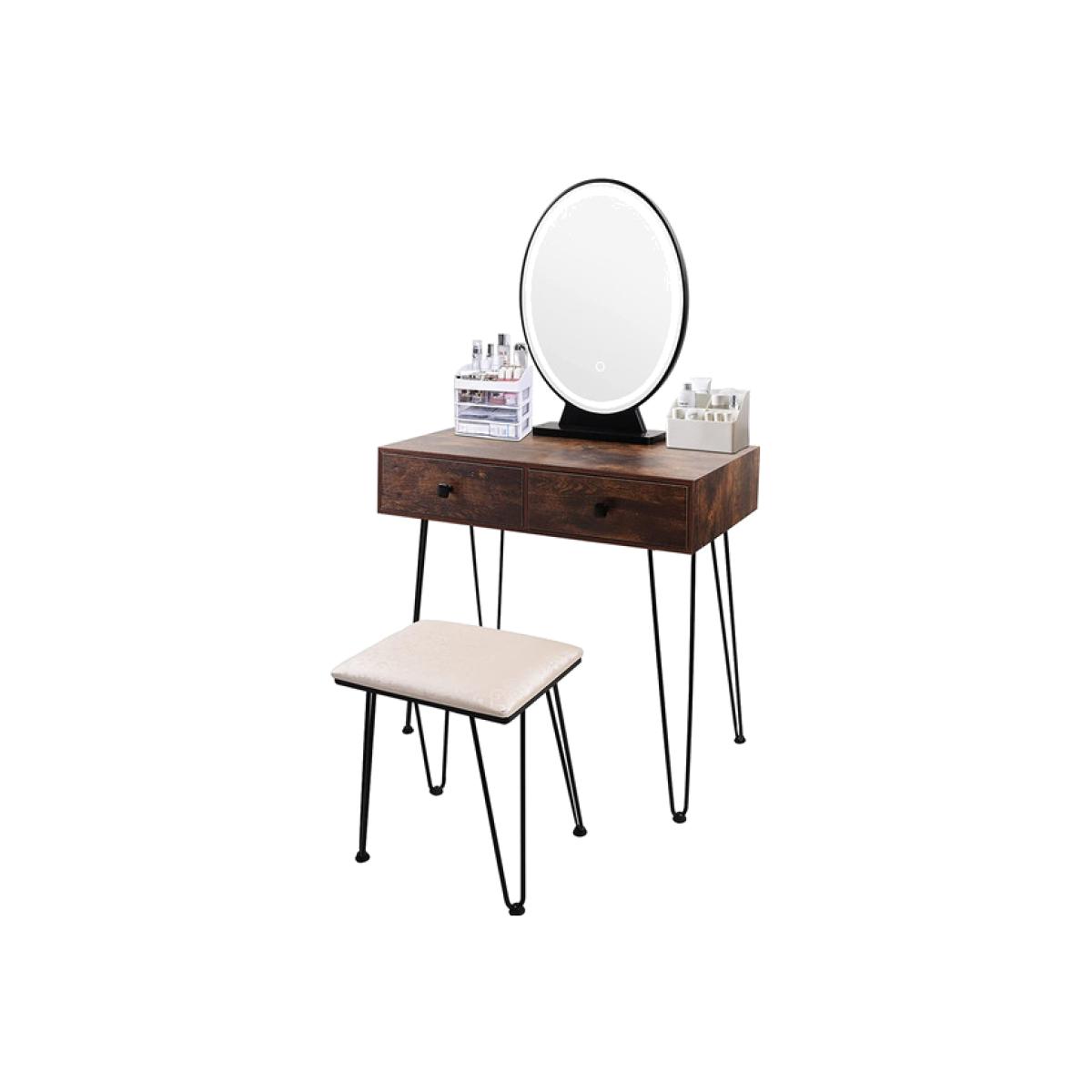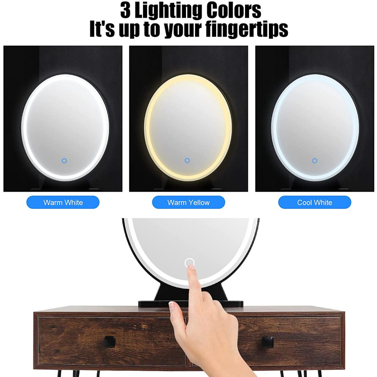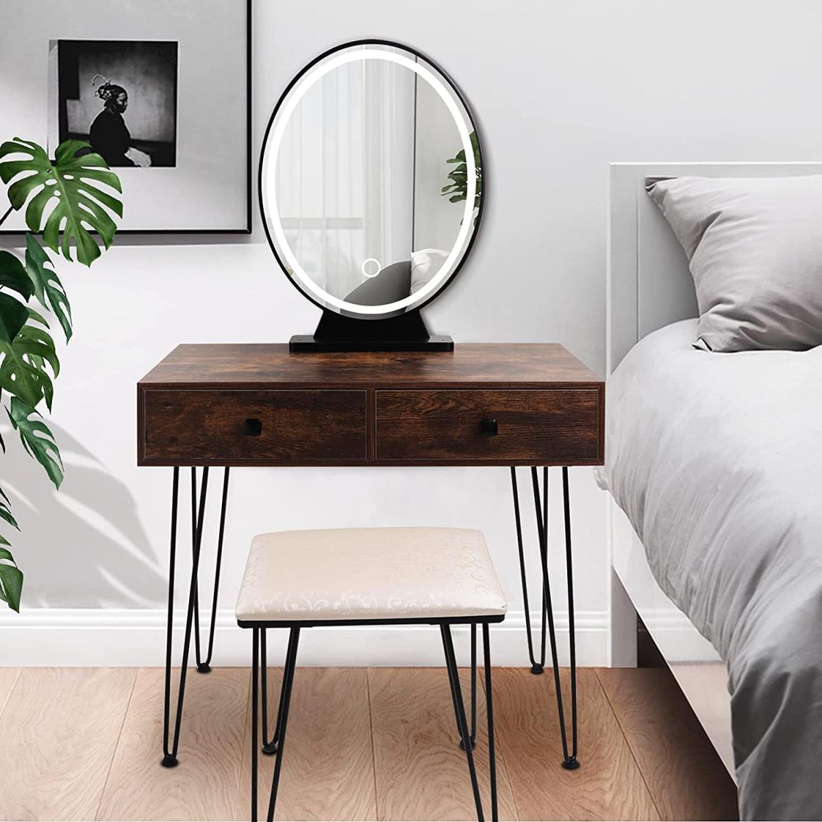 The mirror is equipped with LED light, which enables you to do makeup in the bright. There are 3 modes available for you to switch nature , warm & cold light. Long press to adjust the brightness(from faded to brighter). Different lights illuminate your different beauty. The vanity table comes with 2 large drawers, which provides enough storage space for cosmetics, jewellery, necklaces, ring, earrings, bracelets and other small items. The seat cushion filled with the high elastic sponge , the carved & hollow design makes it look very elegant.