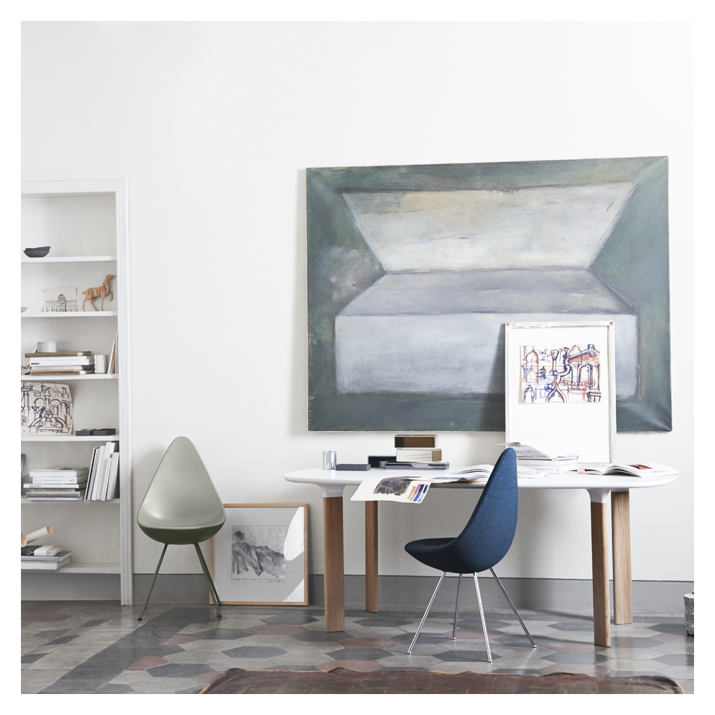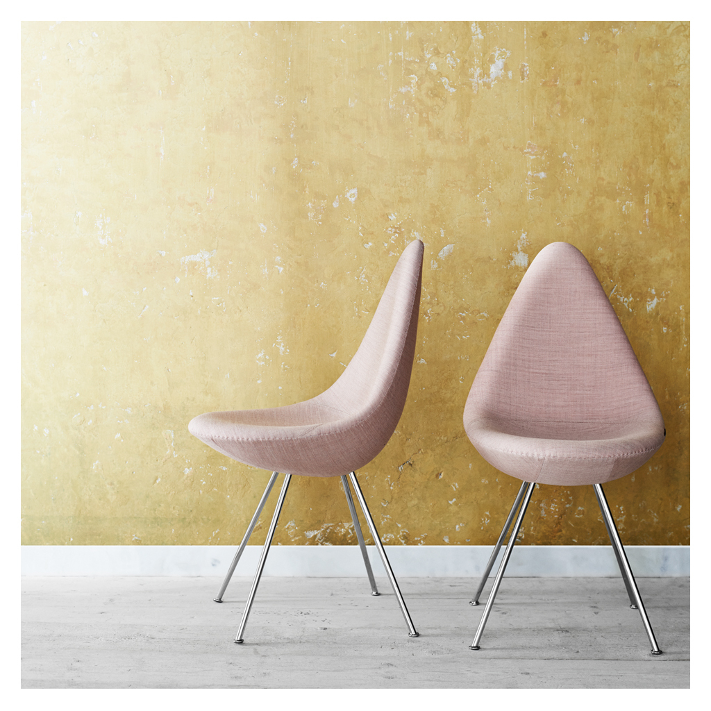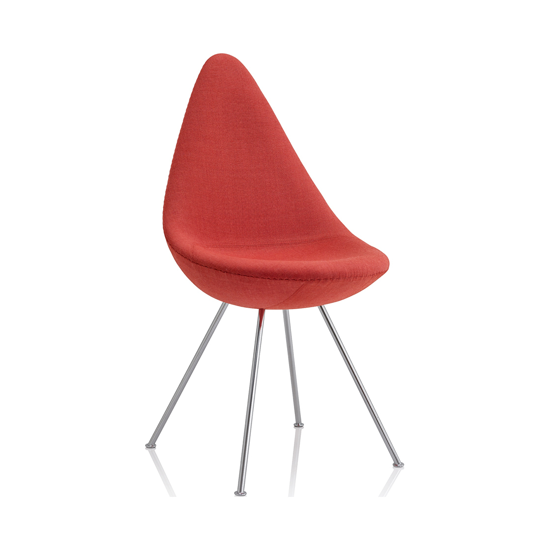 Designed in 1958 by Arne Jacobsen, the statement Drop Chair is crafted to meticulous standards by international design brand Fritz Hansen and is fully upholstered in Kvadrat's Canvas upholstery in a selection of hues. Originally designed for the Royal Hotel in Copenhagen, the Drop Chair epitomises refined design, with an individual silhouette and enduring craftsmanship. In 2014, the Drop Chair was re-launched by Denmark-based Fritz Hansen, producing Arne Jacobsen's personal favourite to exacting standards using the finest raw materials and skilled craftspeople. Fully upholstered in Kvadrat's Canvas fabric, the Drop Chair is awarded with a welcoming and durable surface, woven with a blend of 90% new wool and 10% nylon yarns and contrasted with a chrome-plated base for a distinctly modern finish.