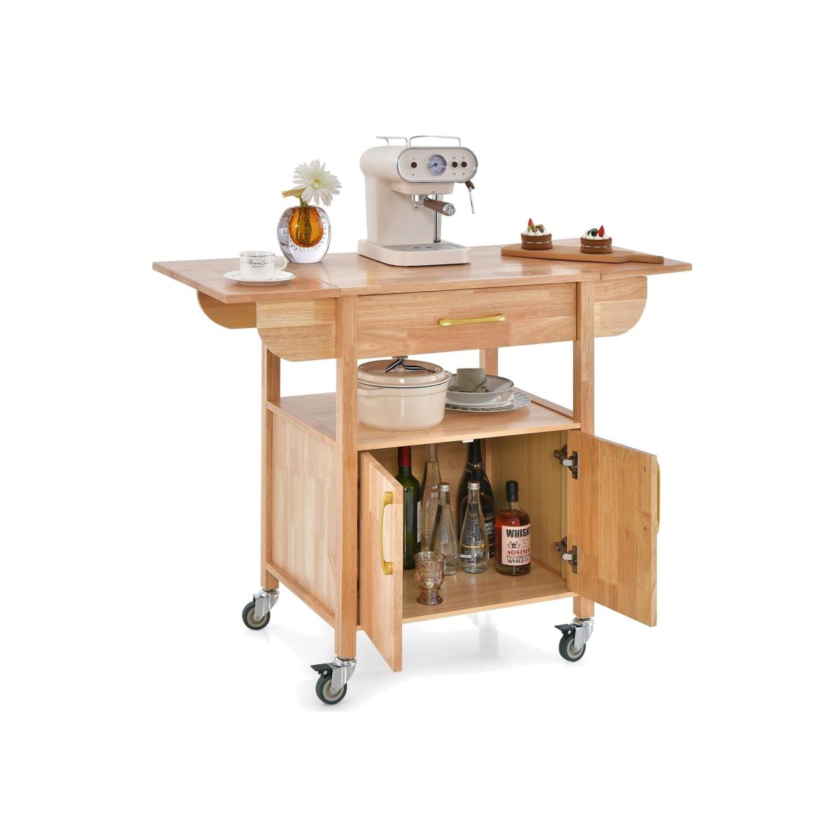 Looking for a versatile and space-saving solution for your small kitchen Our kitchen rolling cart is what you want. With the ability to expand and create extra space whenever needed, it's perfect for small kitchens. Plus, with a spacious countertop, wide drawer, open shelf, and large cabinet, you'll have plenty of storage options for all your kitchenware and more. Equipped with 4 PU swivel casters, smooth movement and stability are ensured as you effortlessly transport your items.