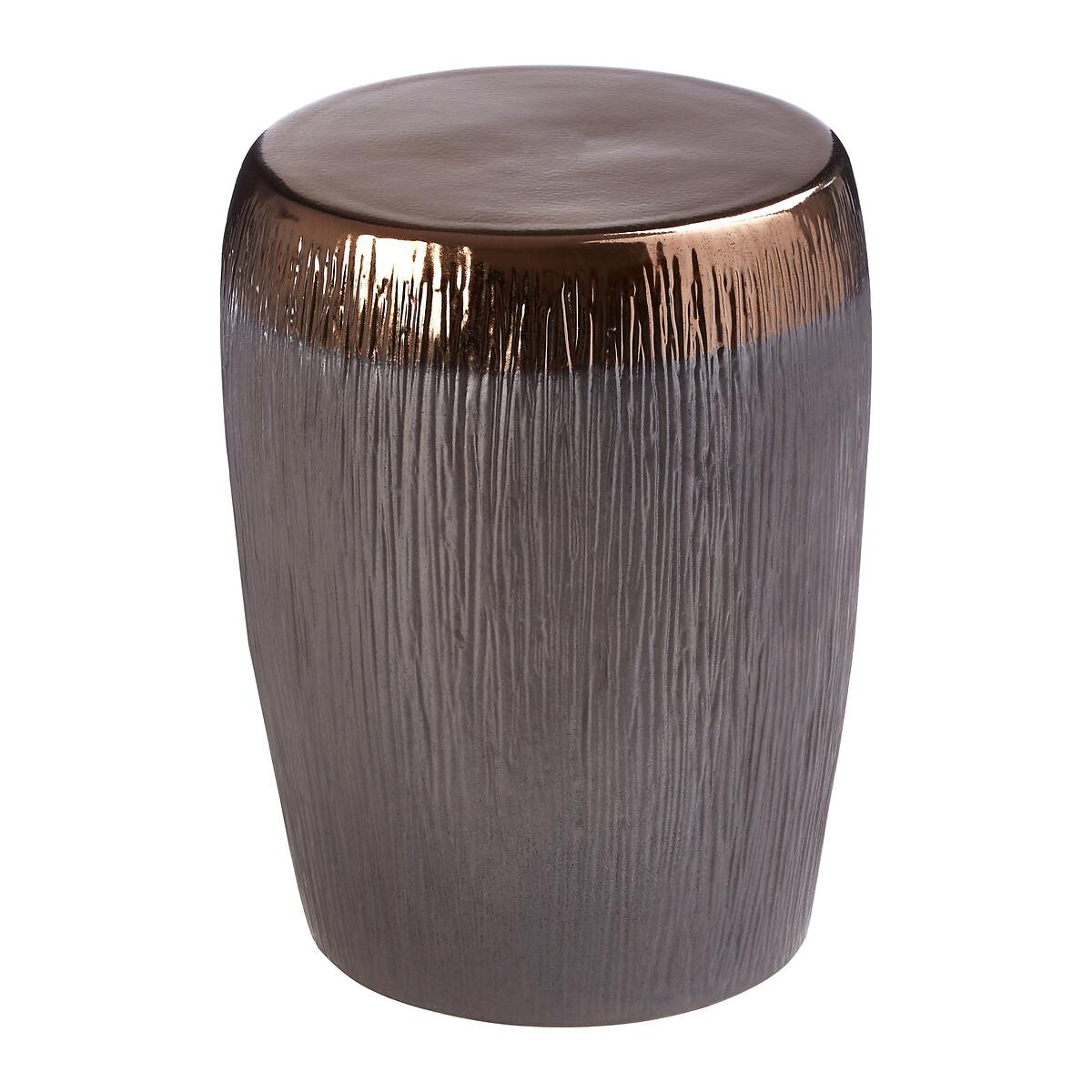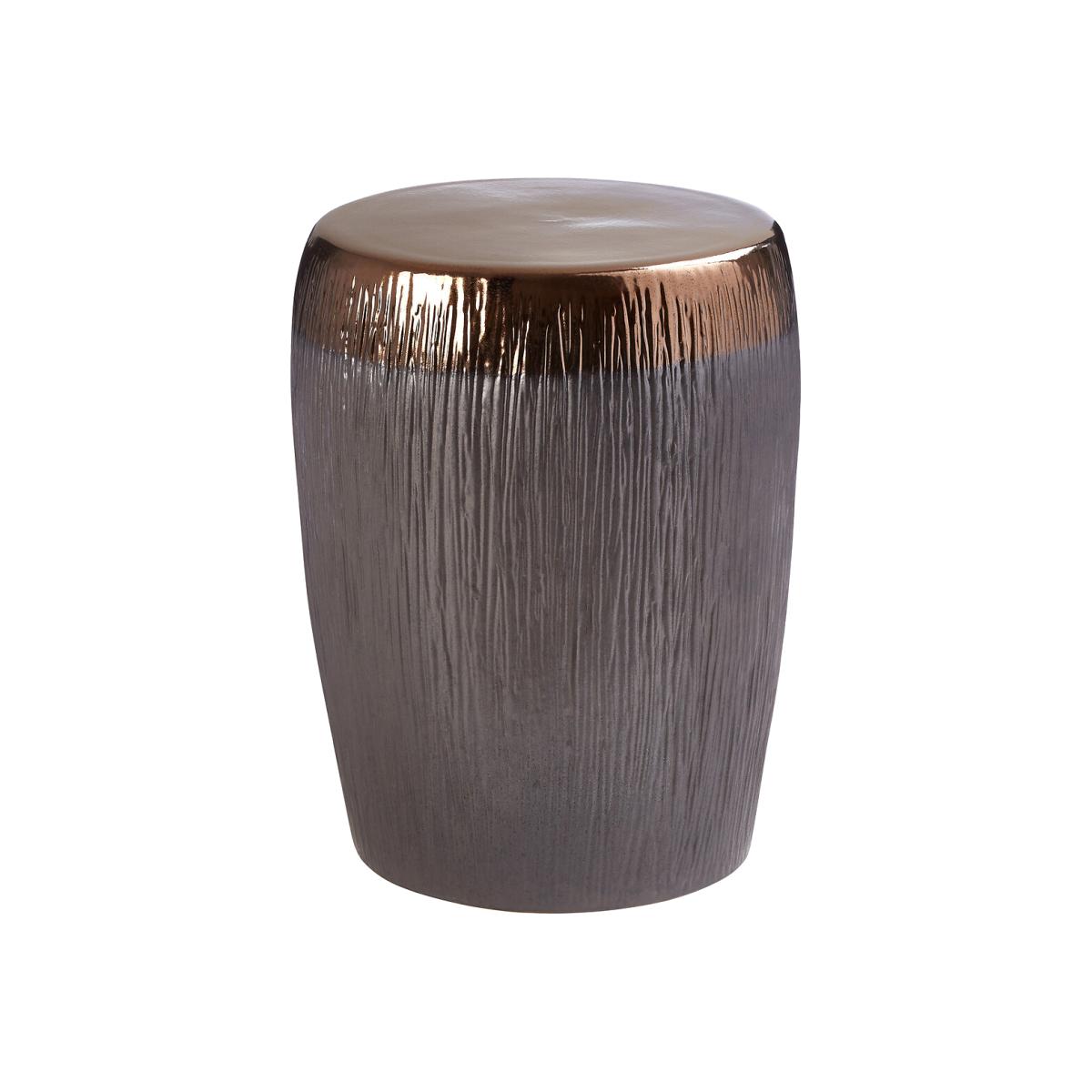 Drum Shaped Textured Occasional Stool with Copper Finished Edge