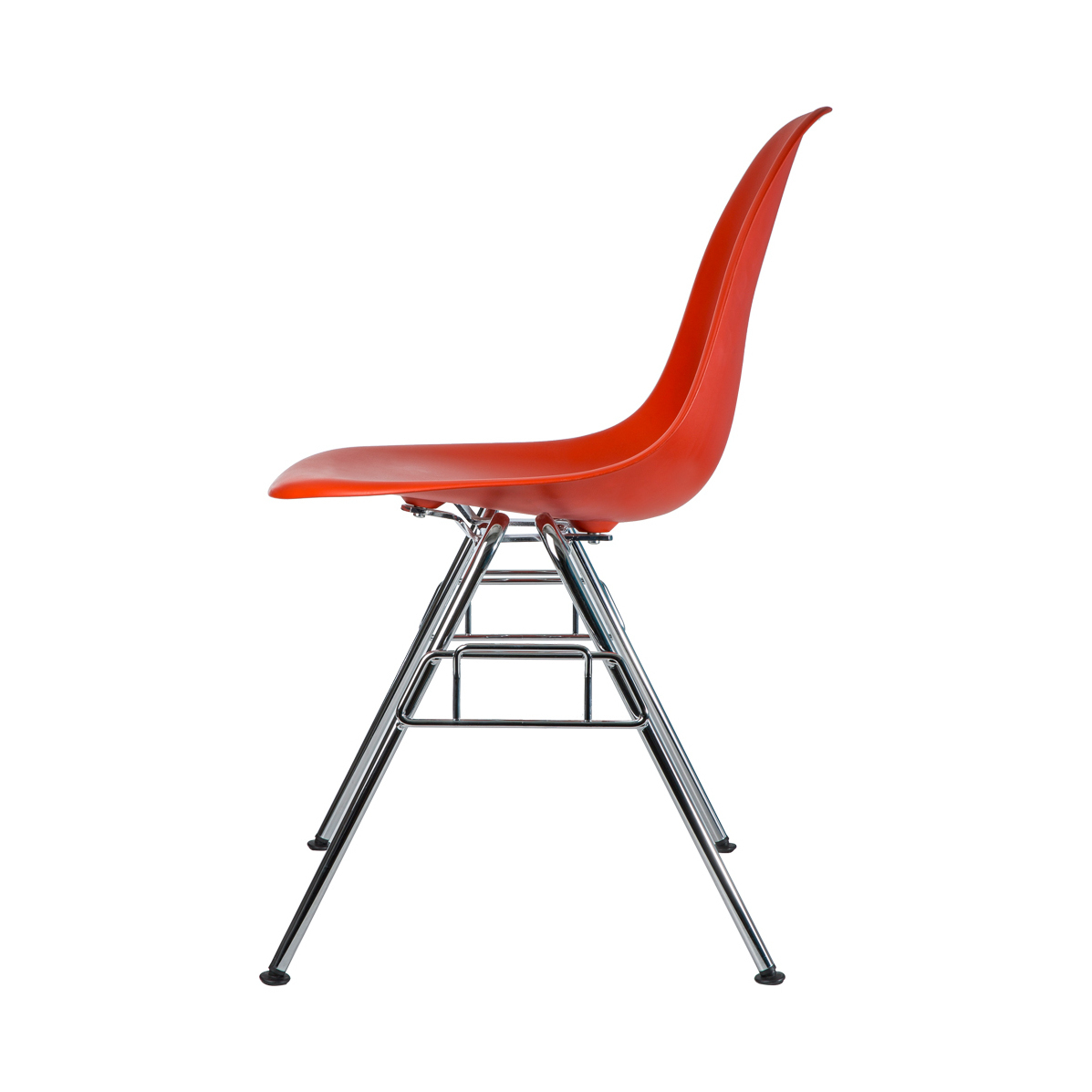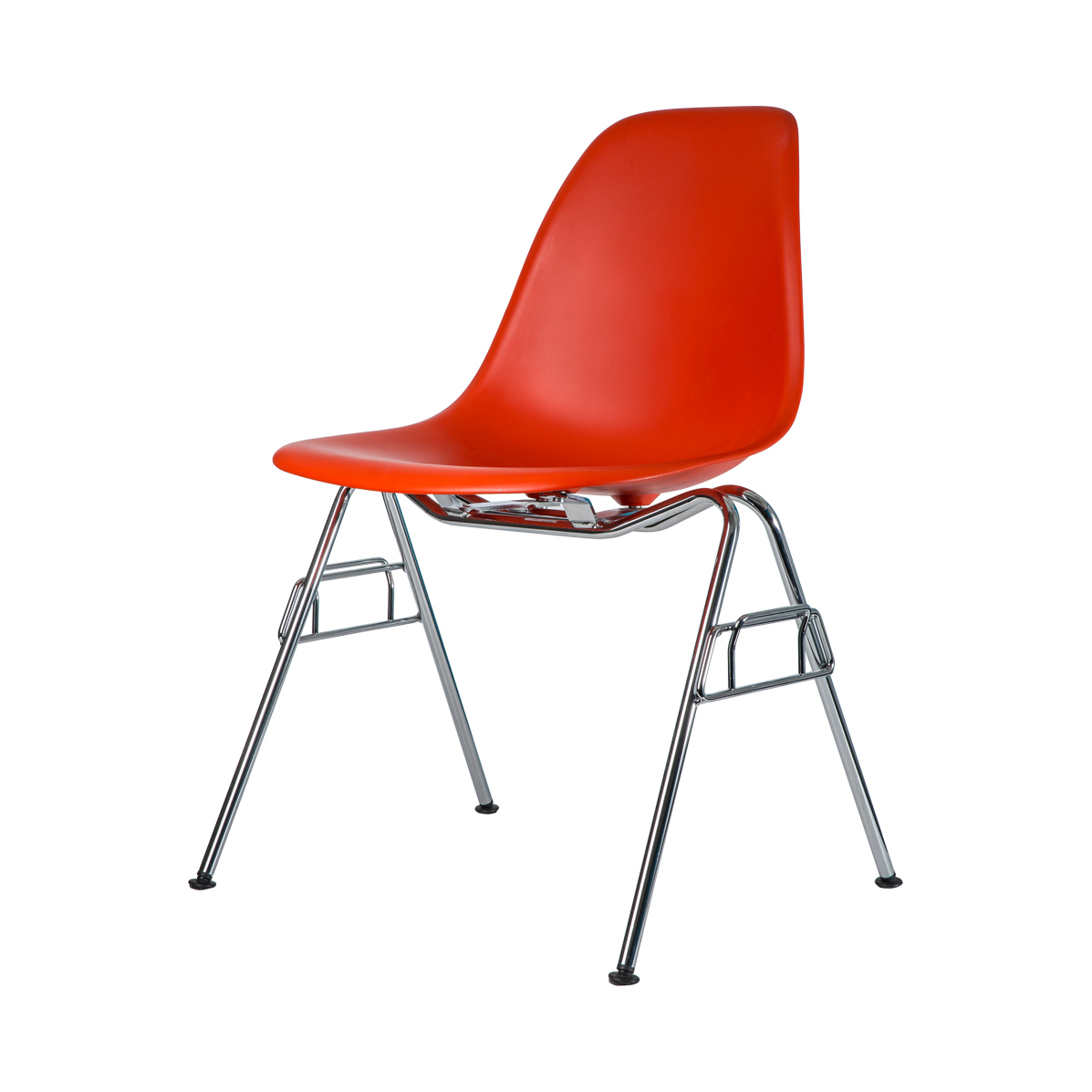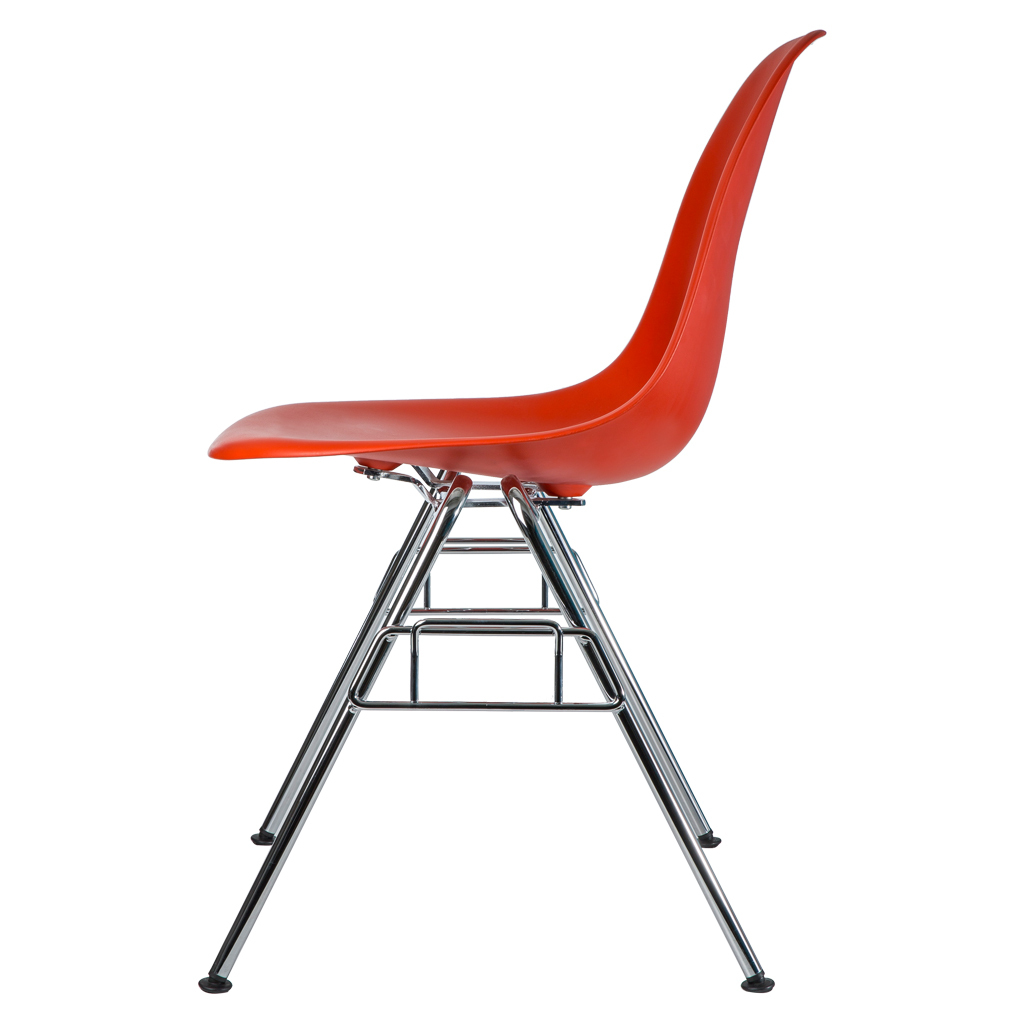 Designed in 1950 by iconic duo Charles and Ray Eames, the DSS-N Plastic Stacking Side Chair is an instantly recognisable piece and is a re-edition of the now legendary Fibreglass Chair by Vitra. In 1993, Vitra discontinued production for ecological reasons, as fibreglass cannot be recycled. Thanks to recent advances in technology and materials, the Eames Plastic Chair was re-issued in the exact same shape but crafted from polypropylene. Crafted from recyclable dyed-through polypropylene for greater comfort, the seat sits on a striking chrome-plated tubular steel base that is stackable up to 8 chairs high for added functionality.