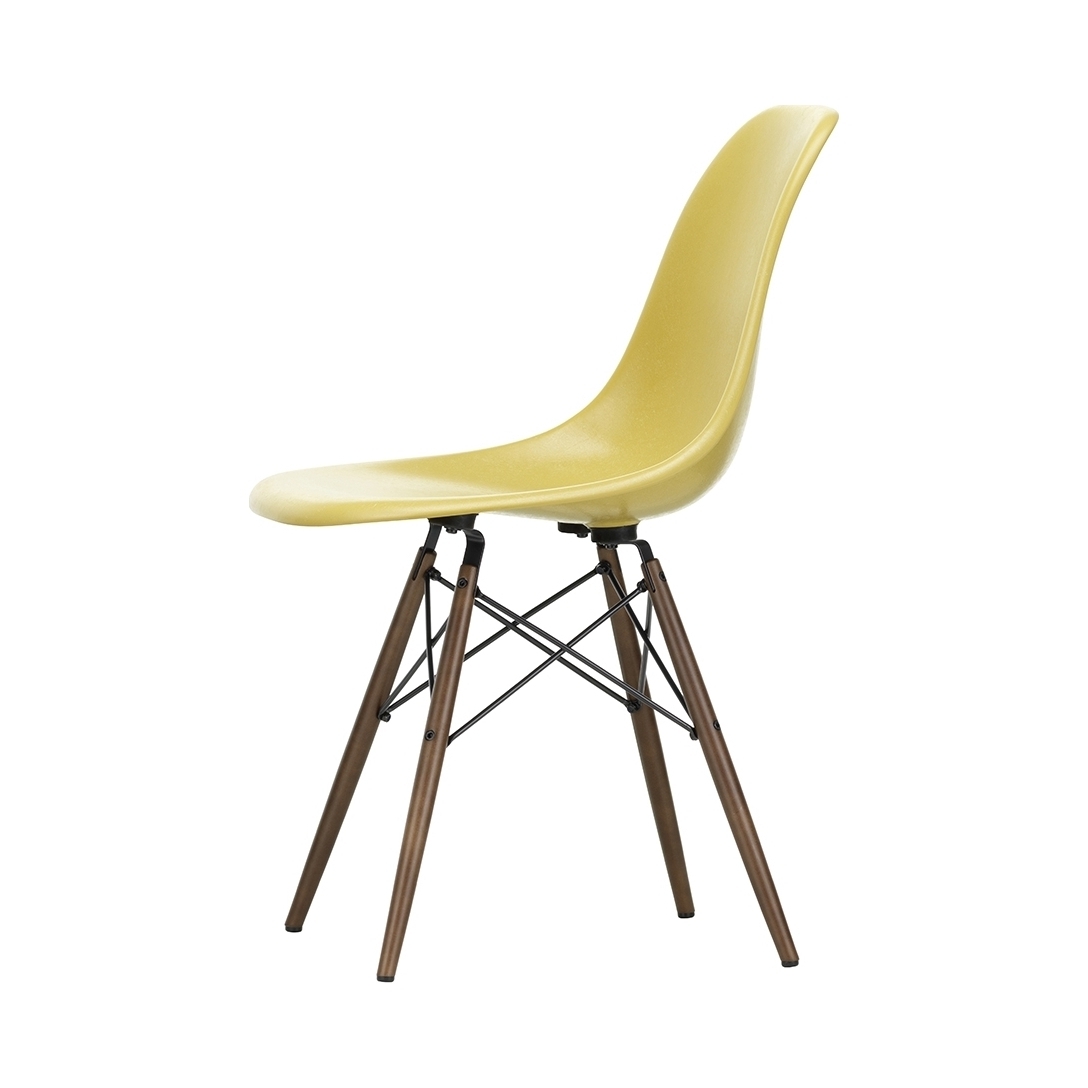 Presented in a range of vibrant hues, Charles and Ray Eames’ DSW Fiberglass Side Chair is being specially re-released by Vitra, having not been produced since the 1990s. Originally launched in 1950, the Fiberglass Chair Collection introduced the idea of the multifunctional chair, featuring shells that could be combined with a variety of bases, and soon became one of the best-known furniture pieces of the twentieth century. The DSW Chair’s shell displays the characteristic irregular surface of Fiberglass, which appears almost like a natural material thanks to its clearly visible fibres. An organic yet contemporary form, the seat rests upon a solid dark maple base with steel ‘Eiffel’ cross struts and features rubber shock mounts to support longer periods of sitting down. In continual development for the modern user, Vitra has revised the geometry of the seat to achieve optimum ergonomics and comfort.