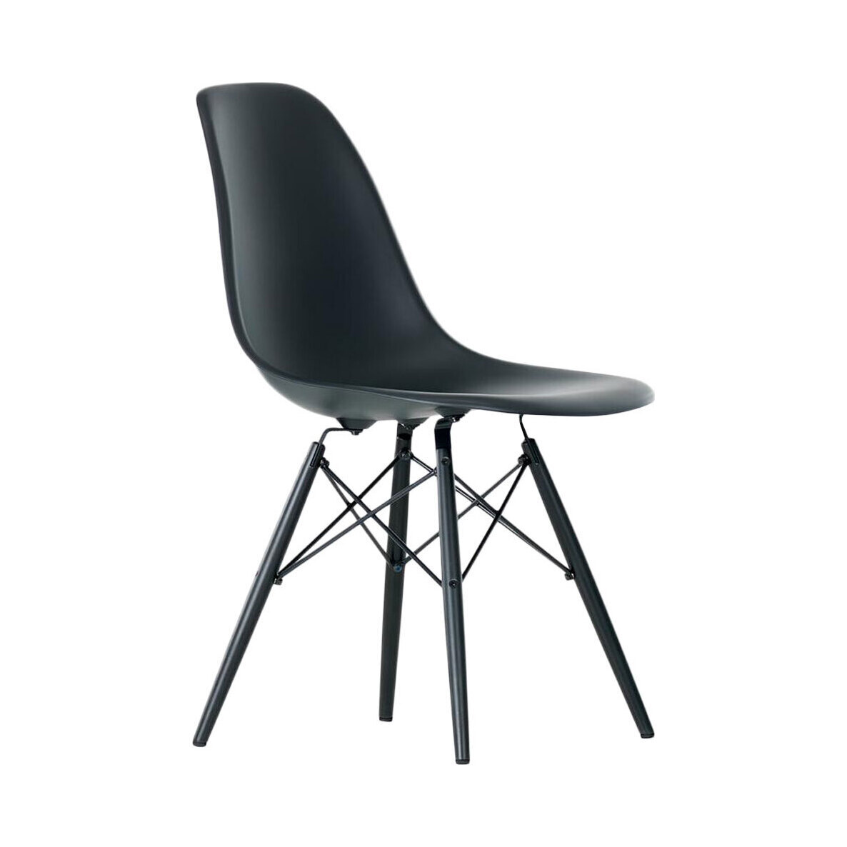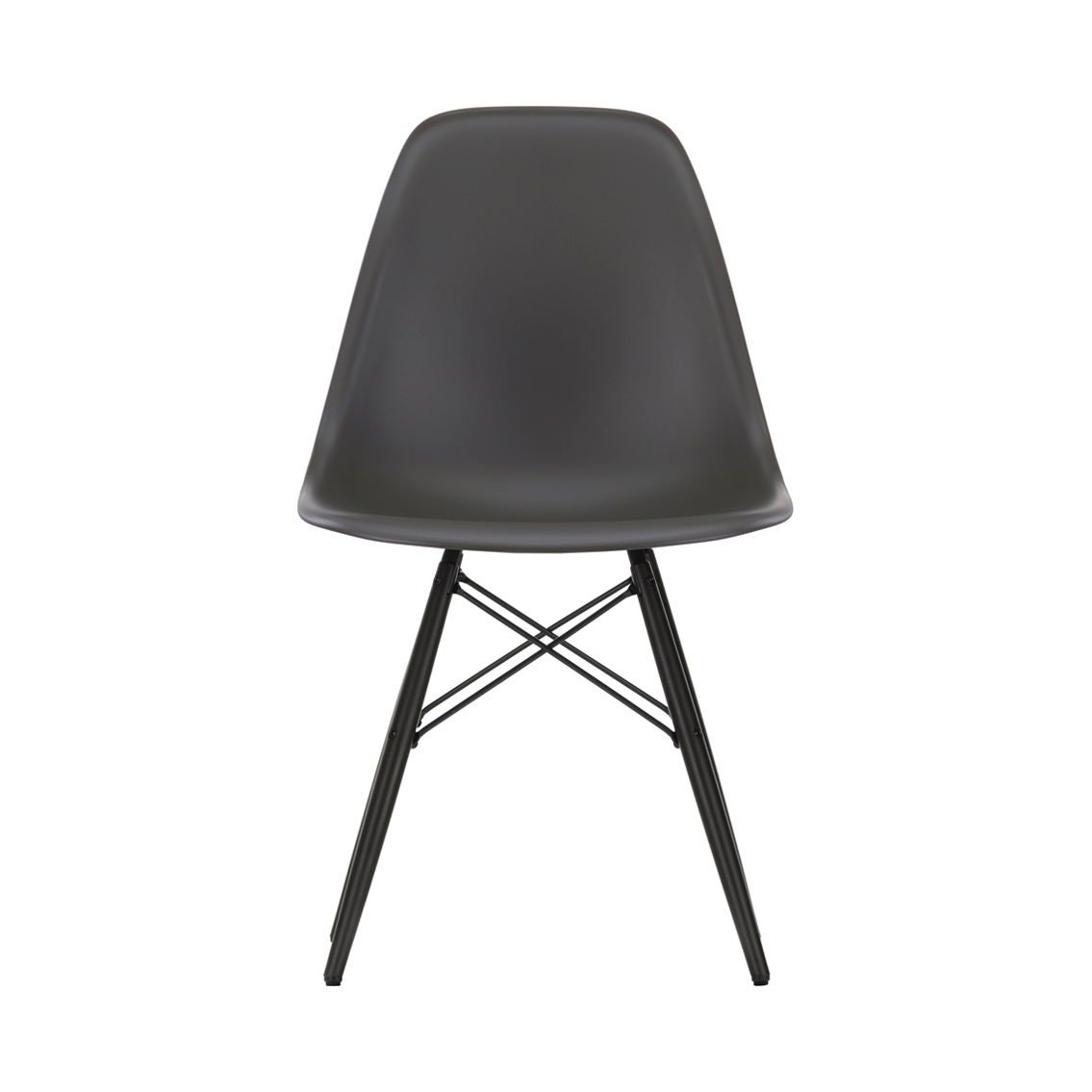 Designed in 1950 by iconic duo Charles and Ray Eames, the DSW Plastic Side Chair is an instantly recognisable piece, showcasing the signature 'Eiffel' base with black maple legs and an on-trend basalt hued seat. Crafted from recyclable dyed-through polypropylene for greater comfort, the seat sits on a striking solid wood and wire base with cross struts features rubber shock mounts to support longer periods of sitting down. The first industrially produced plastic chair, the DSW Chair has a simple and organic shape that has led to its legendary status and universal appeal. Updated in 2016, Vitra added 2cm to the height of the chair and revised the geometry of the seat for optimum ergonomics and comfort.