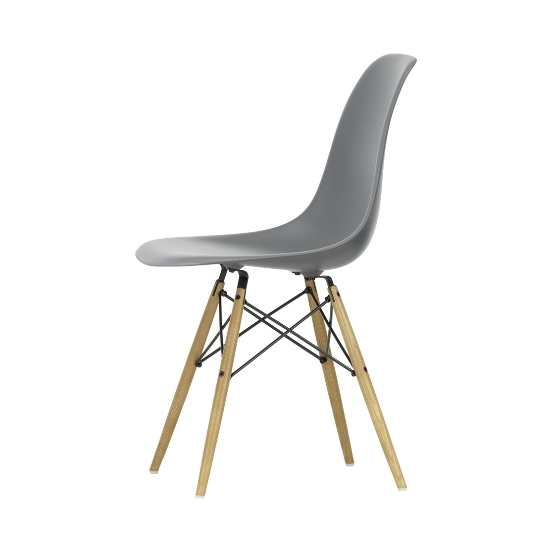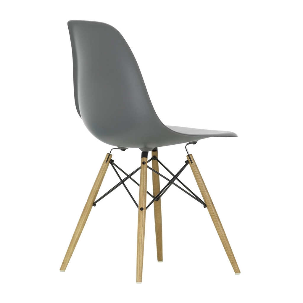 Designed in 1950 by iconic duo Charles and Ray Eames for Vitra, the DSW Plastic Side Chair is an instantly recognisable piece, showcasing the signature ‘Eiffel’ base and honey-tone ash legs. Crafted from recyclable dyed-through polypropylene for greater comfort, the seat sits on a striking solid wood and wire base with cross struts and features rubber shock mounts to support longer periods of sitting down. The first industrially produced plastic chair, the DSW Chair has a simple and organic shape that has led to its legendary status and universal appeal. Updated in 2016, Vitra added 2cm to the height of the chair and revised the geometry of the seat for optimum ergonomics and comfort.