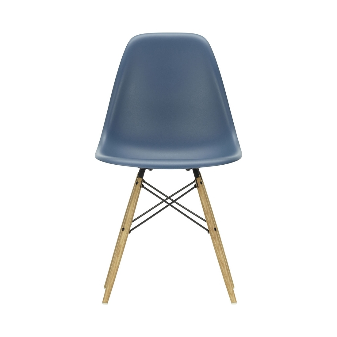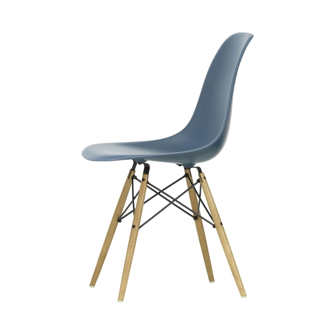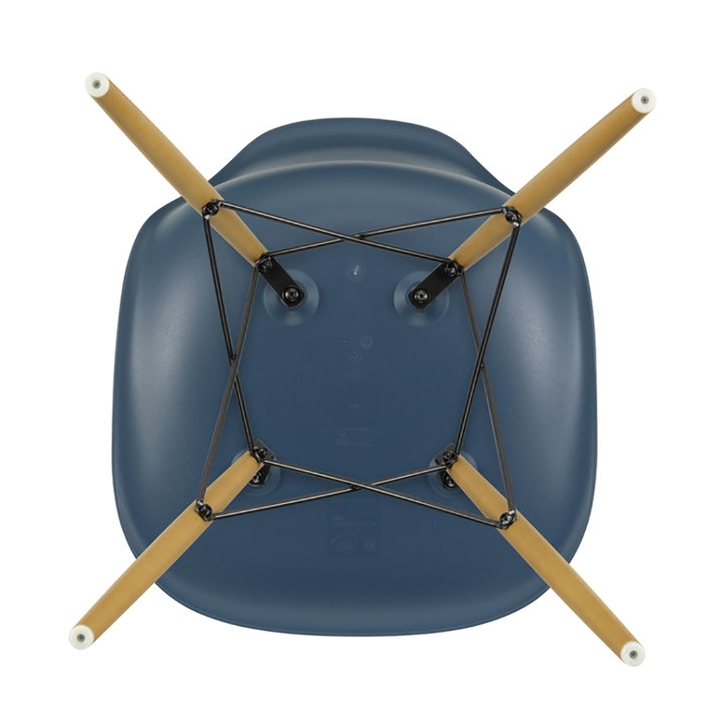 Designed in 1950 by iconic duo Charles and Ray Eames for Vitra, the DSW Plastic Side Chair in sea blue is an instantly recognisable piece, showcasing the signature 'Eiffel' base, updated honey-tone ash legs and a refreshed colour palette for 2019. Crafted from recyclable dyed-through polypropylene for greater comfort, the seat sits on a striking solid wood and wire base with cross struts and features rubber shock mounts to support longer periods of sitting down. The first industrially produced plastic chair, the DSW Chair has a simple and organic shape that has led to its legendary status and universal appeal. Updated in 2016, Vitra added 2cm to the height of the chair and revised the geometry of the seat for optimum ergonomics and comfort.
