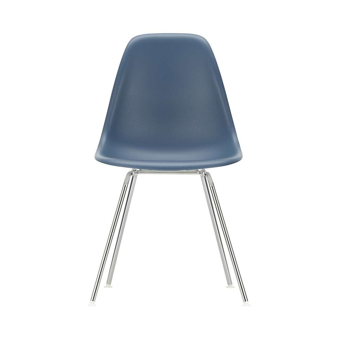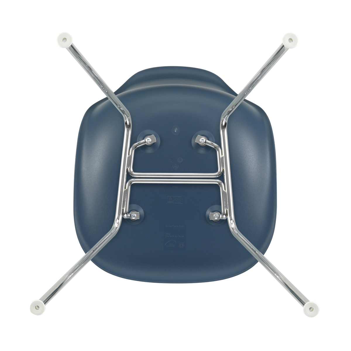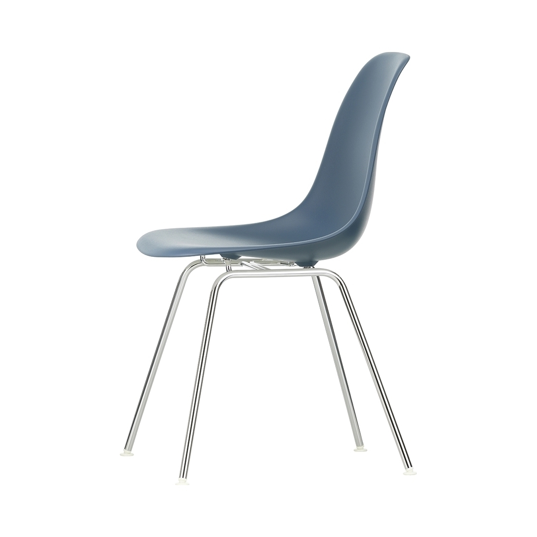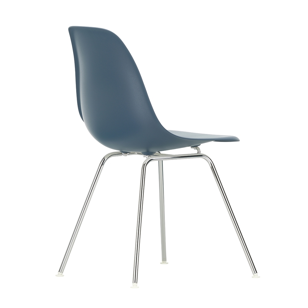 Presented in a sea-blue hue, Charles and Ray Eames' DSX Plastic Side Chair for Vitra features a chrome base and a refreshed colour palette for 2019, paying homage to the model's colour history while acknowledging future aspirations. Originally launched in 1950, the collection introduced the idea of the multifunctional chair, featuring shells that could be combined with a variety of bases, and soon became one of the best-known furniture pieces of the twentieth century. Now referred to as 'The Chair of a Century', the DSX Chair's shell is an organically-shaped, dyed-through polypropylene which rests upon a chrome tubular steel base and features rubber shock mounts to support longer periods of sitting down. In continual development for the modern user, Vitra has revised the geometry of the seat to achieve optimum ergonomics and comfort.