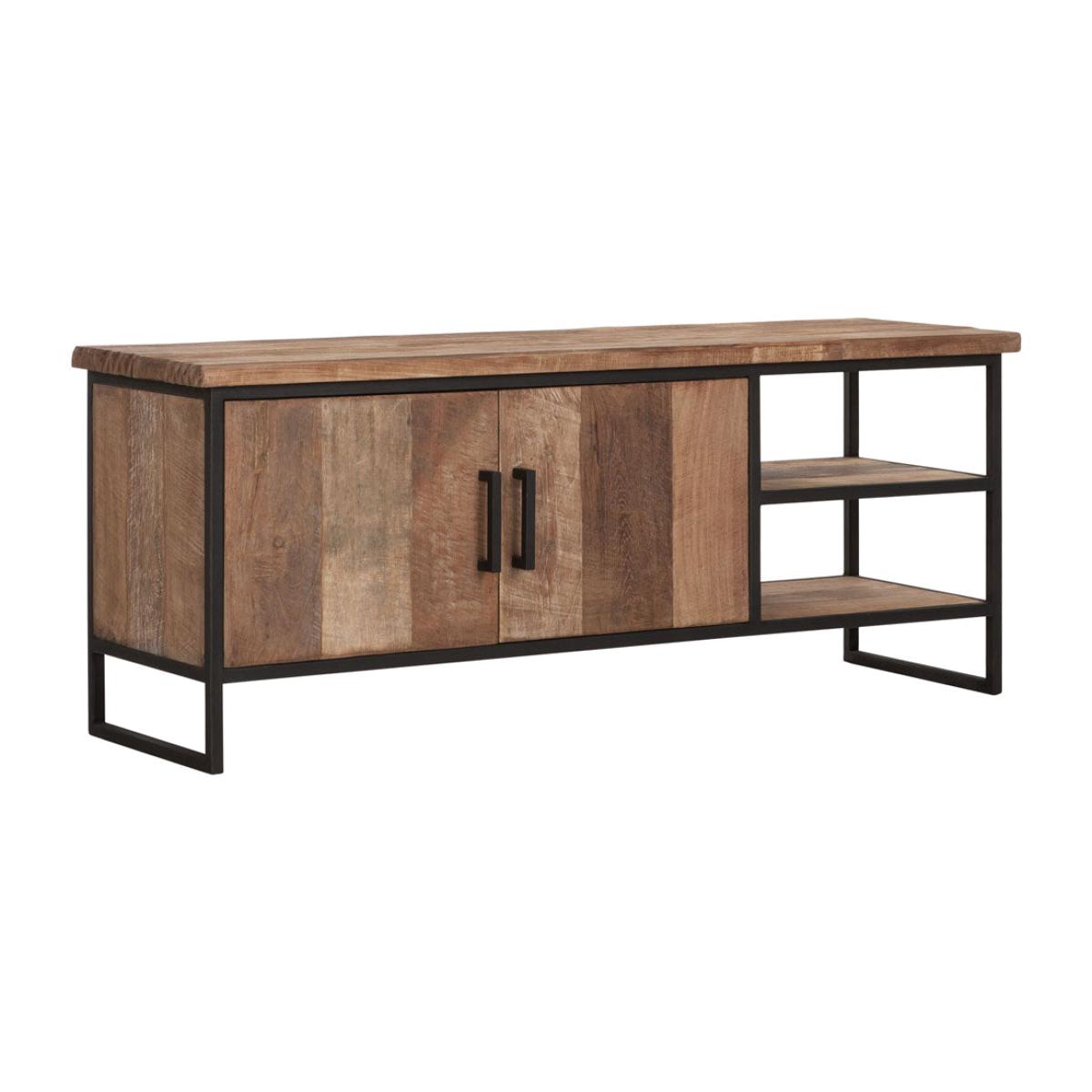 I love this beam TV stand for its blend of rustic warmth and modern industrial style, making it versatile for various interiors like Scandinavian, farmhouse, or urban spaces. Its mixed wood finish adds texture and interest, while the black frame provides a sleek contrast that works well with black accents or hardware. Practical tips include styling the top with minimal decorative pieces or a statement lamp, keeping the shelves open for easy access to media essentials, and using the closed storage for clutter. This piece works beautifully in larger living rooms or open-plan spaces, anchoring the room without feeling overpowering. It’s a great choice for creating a cosy yet contemporary vibe.