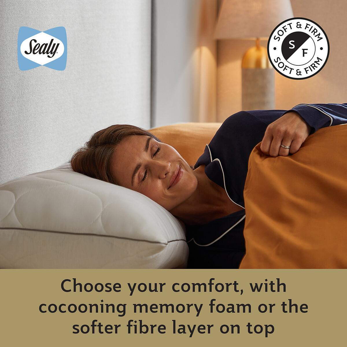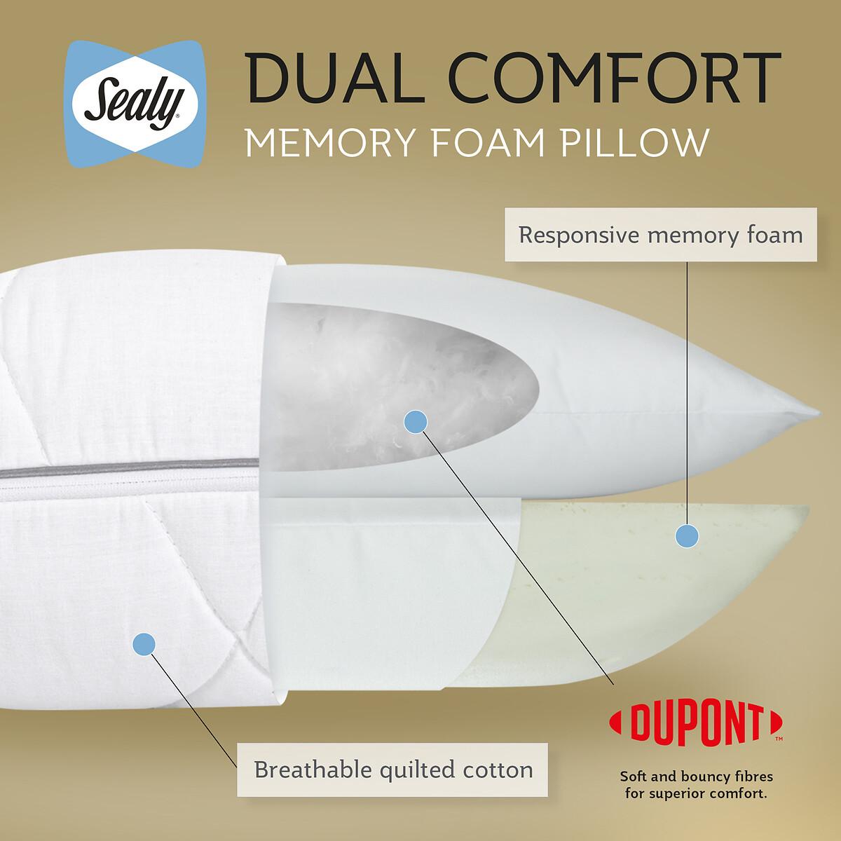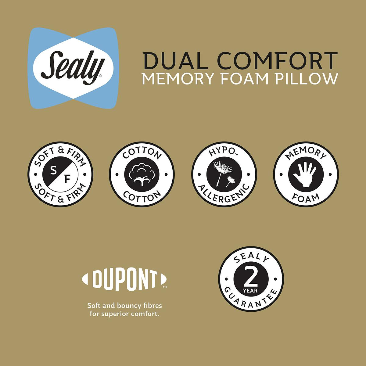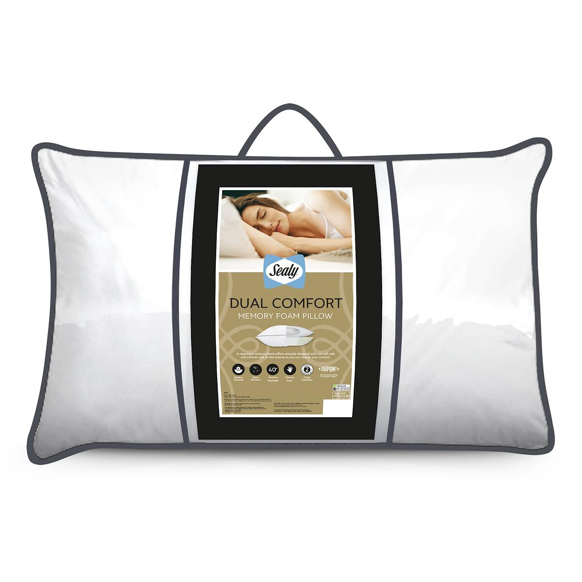 The Sealy Dual Comfort Memory Foam Pillow has been meticulously crafted with a softer side and a firmer side on the reverse so you can choose your comfort. The soft side of the pillow is filled with luxurious DuPont™ hollowfibre which offers a soft, cushioned feel, whilst the reverse features firmer memory foam layer to provide relief and disperse pressure where it is needed most. The pillow is covered in silky smooth cotton which is breathable and naturally cooling. It's even cushioned for a little bit of extra comfort. The Dual Comfort pillow is hypoallergenic, odour-resistant and does not go through any harsh chemical treatments, so it's perfectly kind to skin. Sealy is the world's number one bed brand. With a wealth of experience, we are committed to helping everyone enjoy the beauty of quality sleep. This product will be dispatched by one of our trusted suppliers. You’ll be contacted by their selected courier about your delivery.