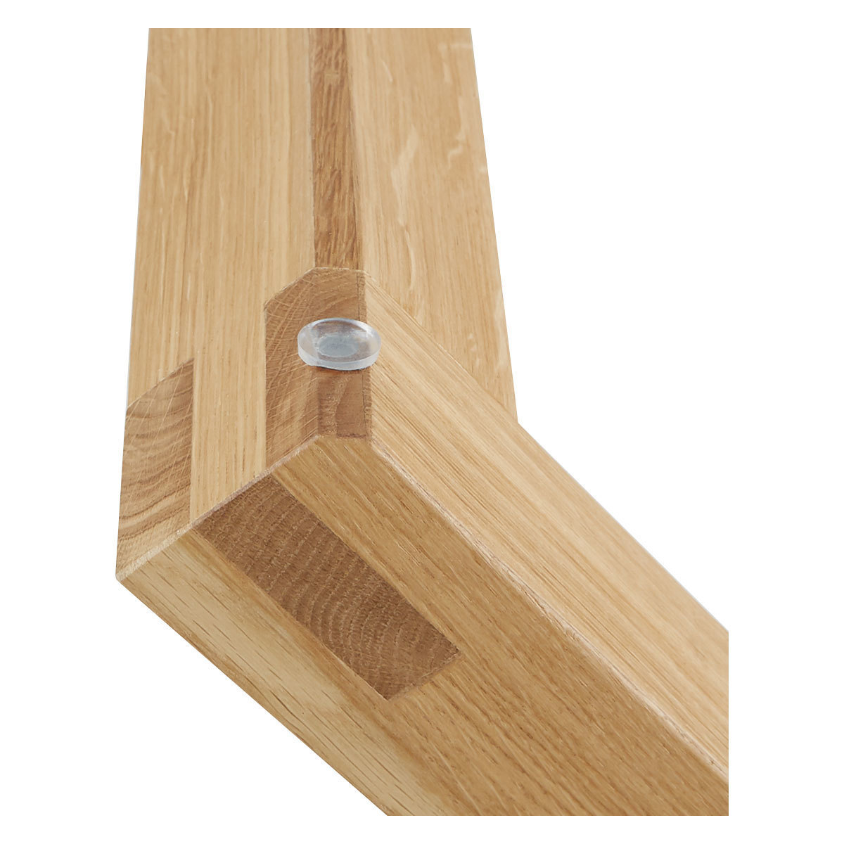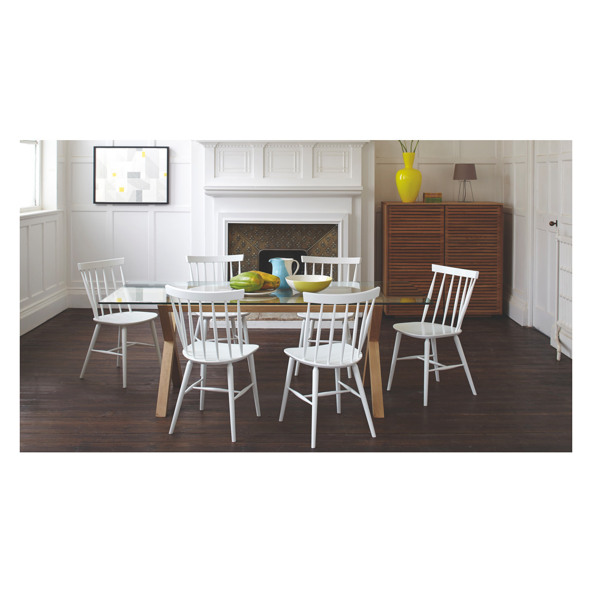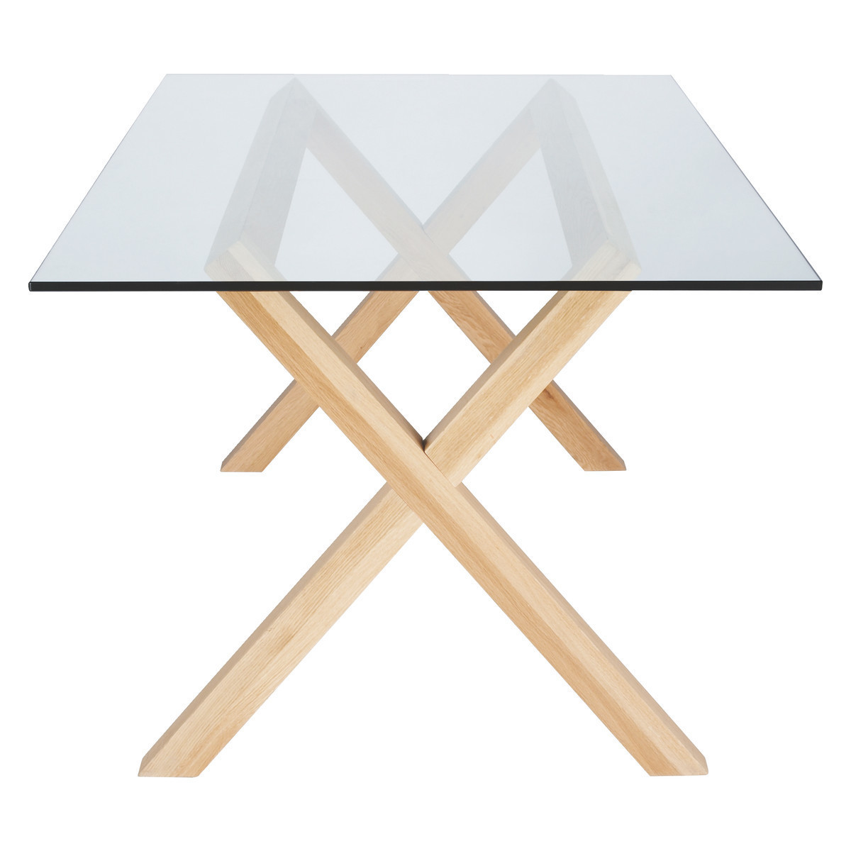 The contemporary, Dublin 4 seater oak and glass dining table adds a sense of space to a room, thanks to its simple, clean-lined cross frame and bevelled edge clear glass top. The wood and glass mix of material complements a traditional or contemporary dining room and can also be used as a desk in the home office. Designed by and exclusive to Habitat, Dublin is available in various sizes and in a walnut finish.
