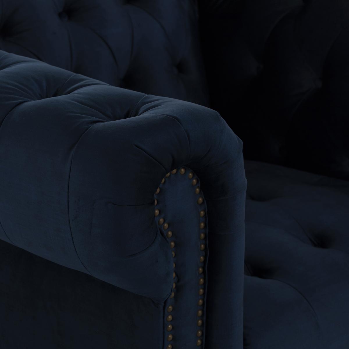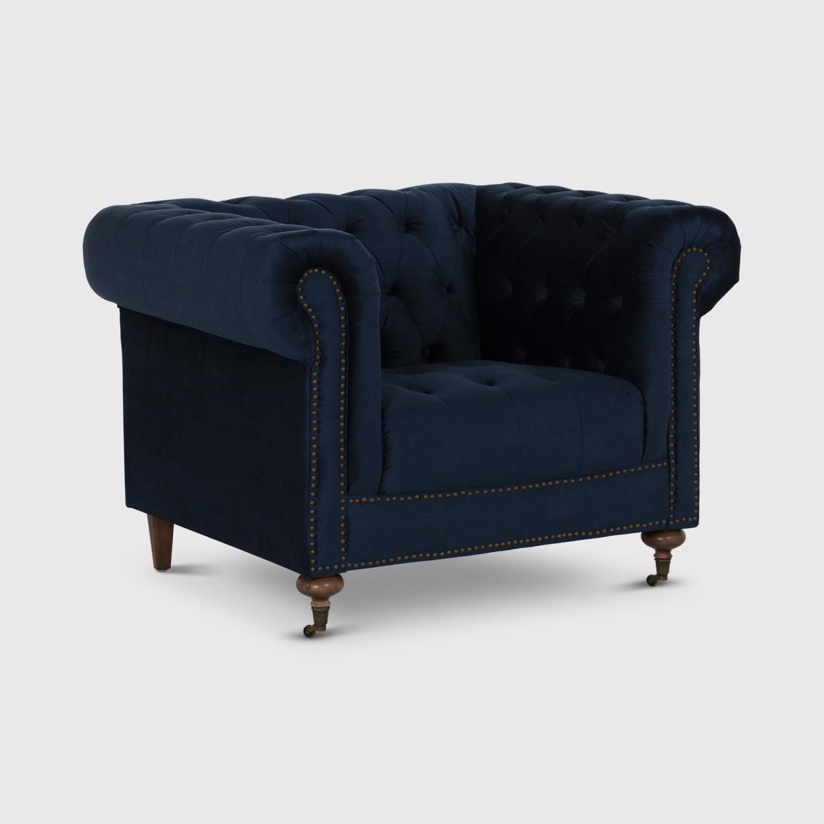I’m a fan of the Duchamp for its classic Chesterfield silhouette updated in a rich navy velvet - it adds depth and texture without overwhelming a room. It works well in both traditional and contemporary settings: pair it with timber floors and a neutral rug in a period living room, or contrast it against crisp white walls and metallic accents in a modern apartment. For styling, tuck a small sheepskin throw over one arm to soften the lines and introduce a lighter tone, then balance the seat with a slim side table and a low-profile lamp for an inviting reading corner.