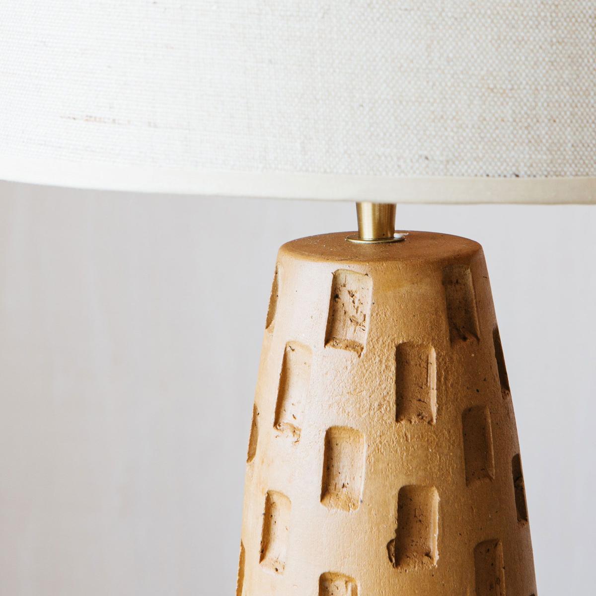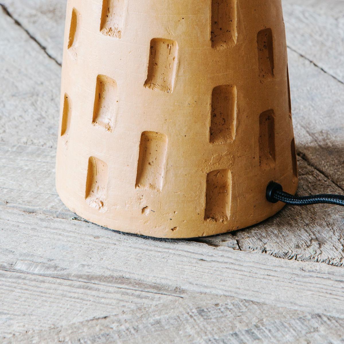 I love this piece because of its warm terracotta tone and tactile, textured finish, which adds character and an earthy vibe to any space. It works particularly well in bohemian, Mediterranean, or rustic interiors, where natural materials shine. For styling tips, try pairing it with neutral or warm-toned shades to keep the look cohesive, and consider placing it on a wooden or woven surface to enhance its organic feel. This lamp base also lends itself to be a statement piece on side tables or layered on a bookshelf alongside neutral ceramics or greenery for a well-rounded vignette. Its simple yet bold design makes it versatile enough to complement both contemporary and vintage interiors.