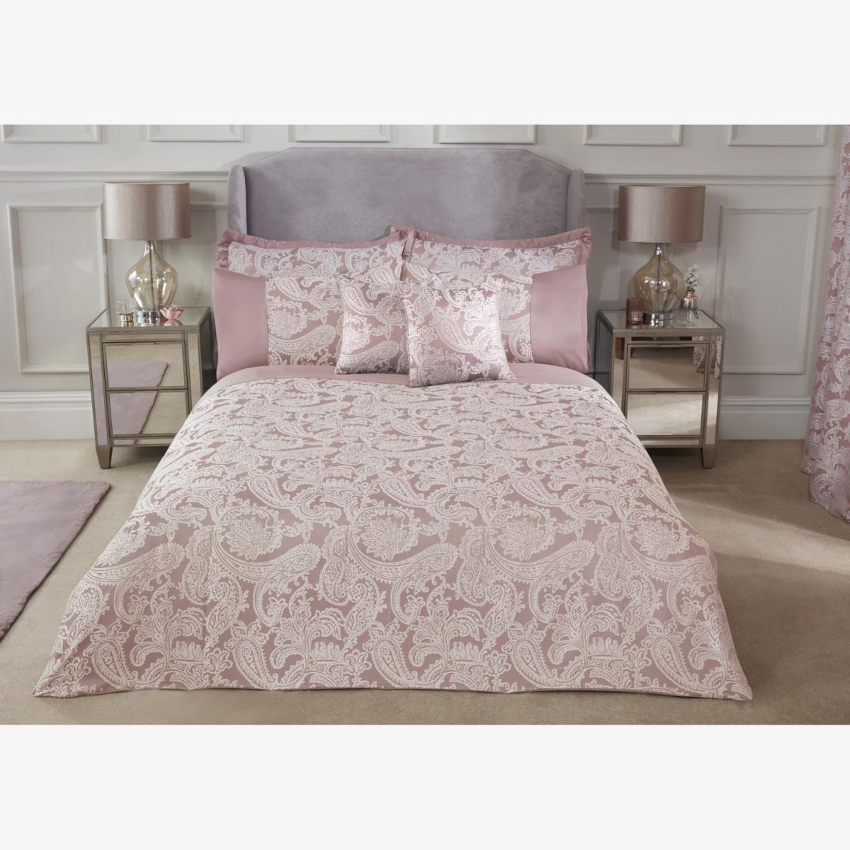 The Duchess duvert set has a luxurious soft sateen finish border detail with a central jacquard modern paisley style design. This stylish bedspread set is coloured in modern tones, with a light and whimsical traditional design. Perfect for a modern or traditional home.