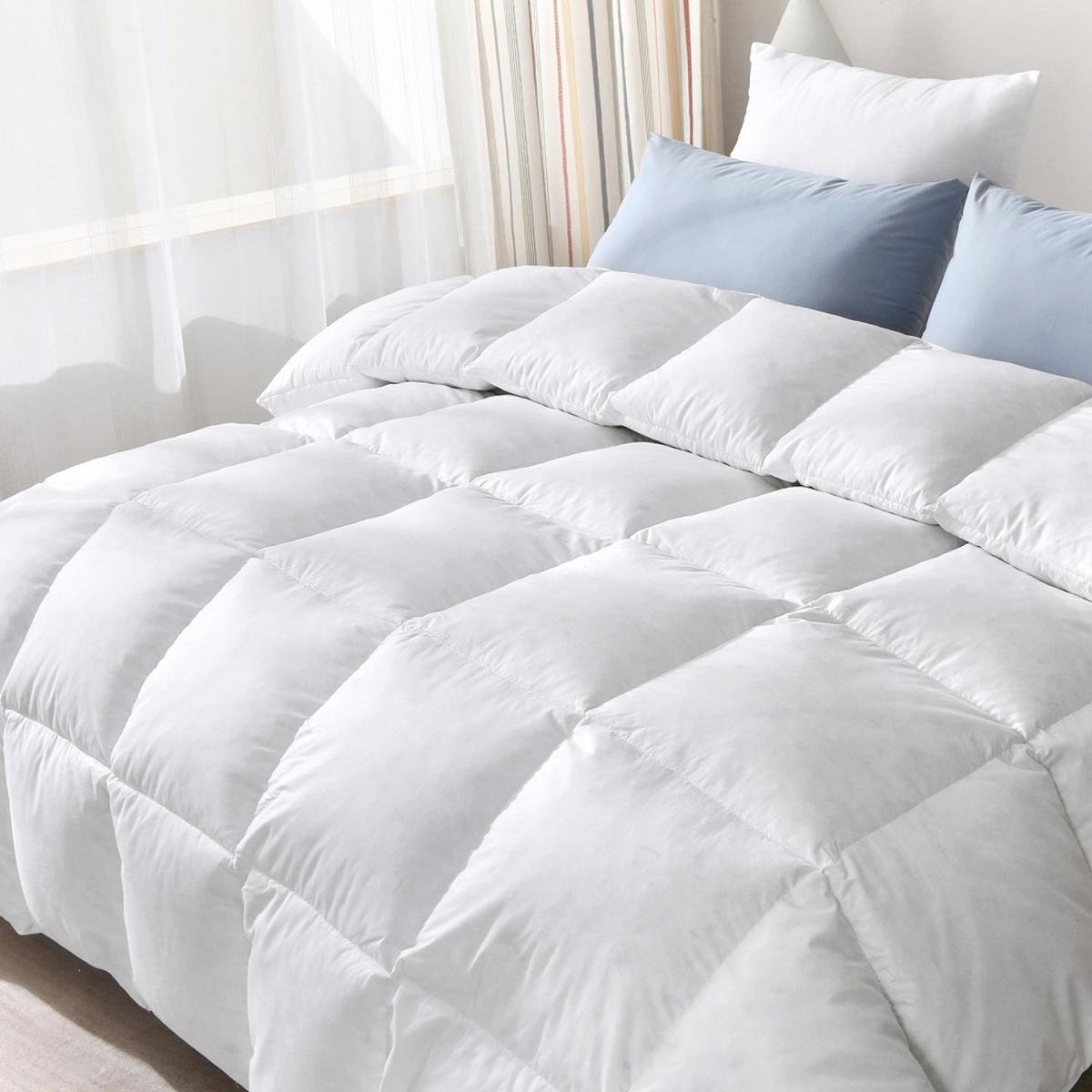 Excellent quality 4.5 tog duck feather and down summer quilt. The down is the feathers from the belly of the duck, this means it is softer which makes excellent duvets. The feather and down also make these duvets light and lofty, giving you a comfortable and breathable sleep. These duvets are also pocket stitched to hold feathers in place (cheaper duvets won't be pocket stitched, which results in all the filling at one end). 85 duck feather, 15 duck down. The 100 cotton cover made from super soft 220 thread count cotton makes this an all-round, durable duvet made from natural materials.