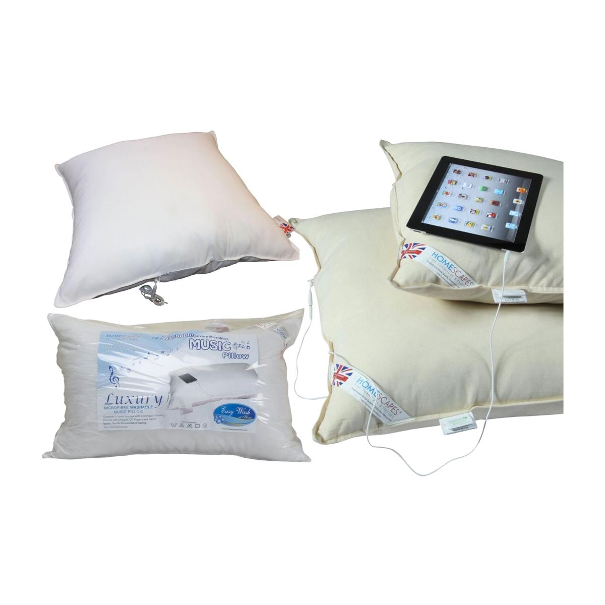 Homescapes are well known manufacturer and brand of top quality pillows, duvets and mattress toppers. They have been constantly requested by customers to provide with a good music pillow. Music pillows available in the market were neither comfortable to sleep on nor washable and produced with a low specification of fabric and fillings. Another problem was that all these pillows were not graded for their firmness, so customers were not able to choose a suitable pillow. So Homescapes has come with a solution and designed and manufactured washable music pillows in soft and medium firm ratings. Homescapes Music pillow provide total comfort and being fully washable they are also very healthy pillows. In addition to being excellent pillows, they also provide good quality sound from a high grade installed removable speaker. Homescapes are known for their innovation and for bringing department store quality direct from the manufacturer and this is yet another quality product from them.