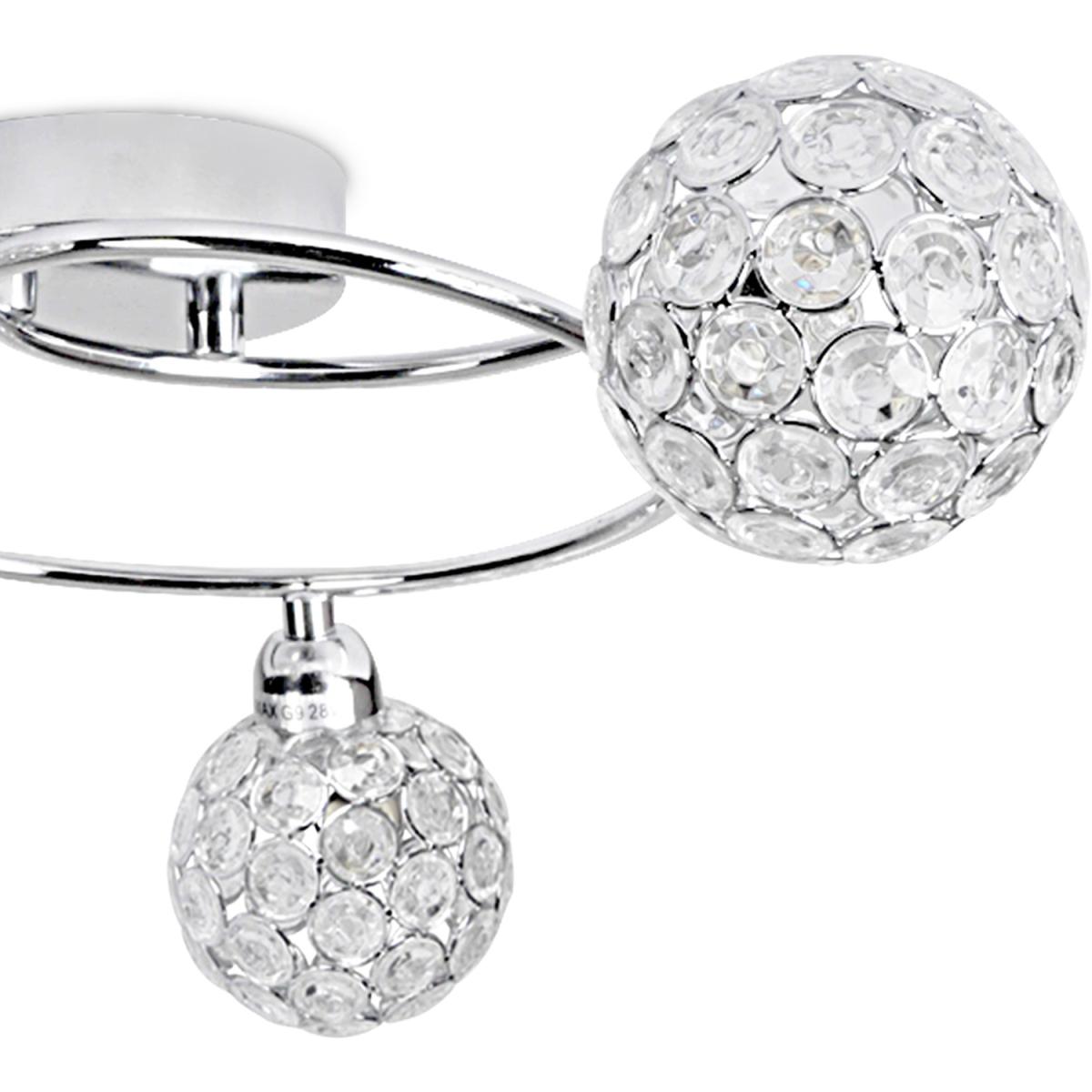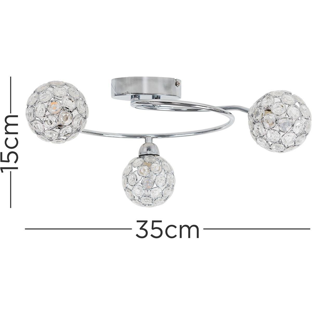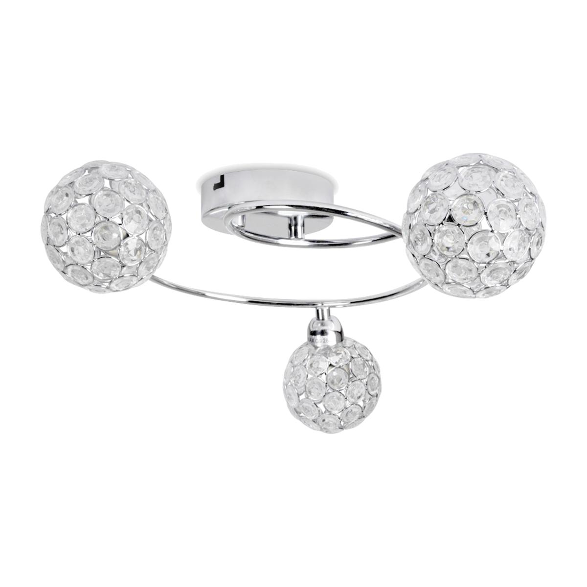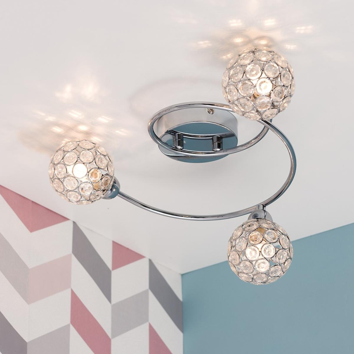 Beautiful modern 3 way swirl design ceiling light fitting, with a stunning chrome finish. With beautiful Moroccan style acrylic jewel globe shades - creating a wonderful ambient glow and gorgeous patterns across the ceiling. Ideal for living rooms, dining rooms, bedrooms and hallways, this flush ceiling light would like perfect throughout the home.
