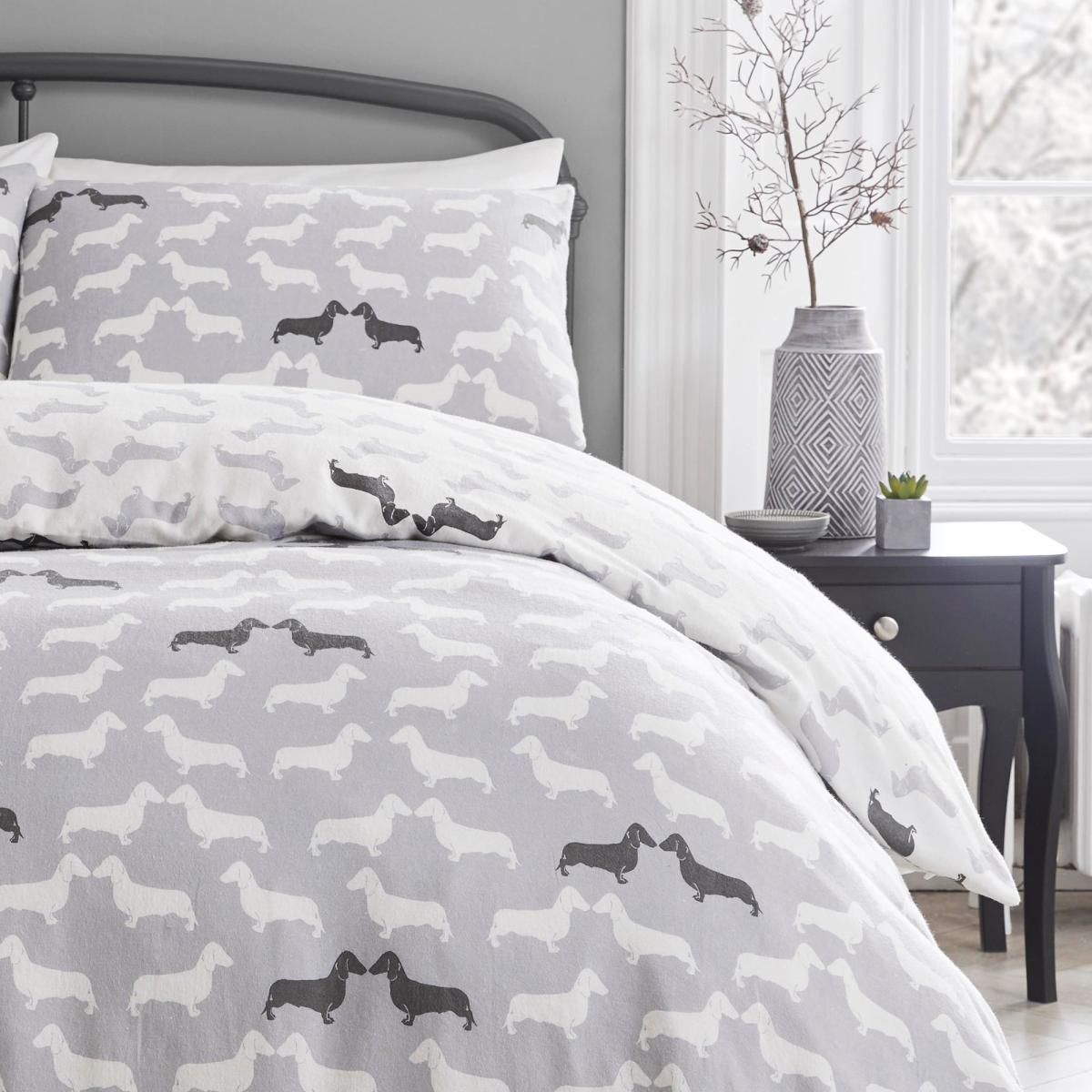 If ever there was a 'pawfect' design for dog lovers, this is it! Whether you’re a time-served dog owner or you just dream of having a four-legged friend, this snuggly warm 100% brushed cotton grey bedding set will send you off to sleep with the sound of padding paws filling your dreams. Popper button closure allows you to easily secure your duvet cover around the duvet. Care Instructions:. This Collection is verified by OEKO-TEX® and independently tested for harmful substances. It stands for customer confidence and high product safety.
