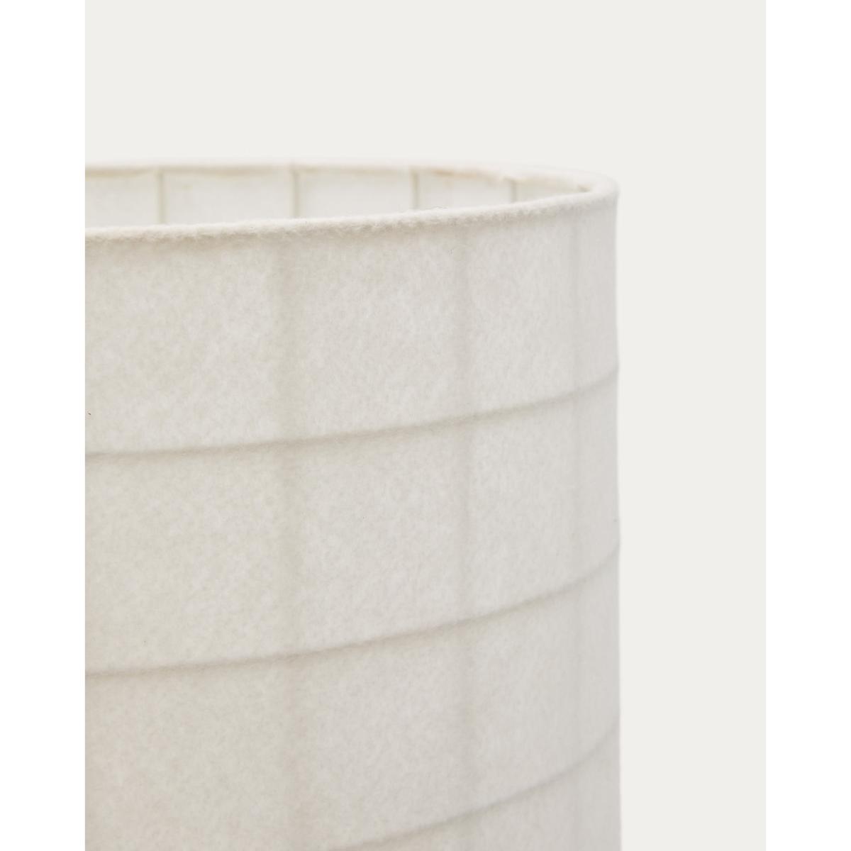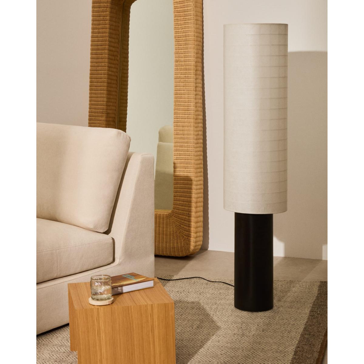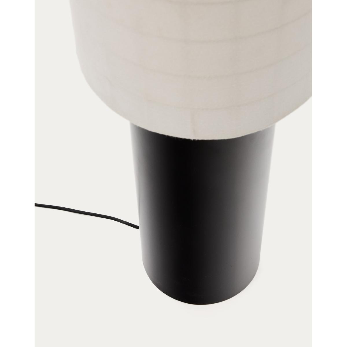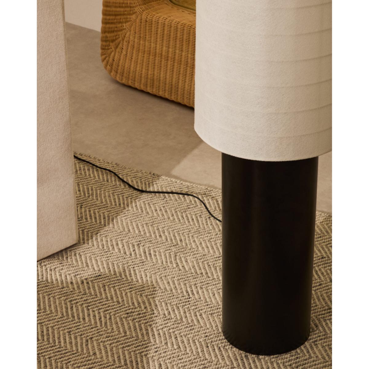 The Dulan floor lamp blends elegance and softness in a contemporary design that stands out for its simplicity and its ability to bring warmth to any environment. Its black metal base with clean and modern lines contrasts exquisitely with the cotton lamp shade, made with a fine yarn that allows for a soft and enveloping diffusion of light. This contrast of materials creates a perfect balance of robust and delicate, making Dulan an ideal piece for modern, welcoming spaces. As well as being an aesthetic element, the cotton lamp shade is designed to soften the light, creating an intimate and relaxing atmosphere, perfect for relaxation areas, living rooms or even an office that requires a touch of warmth. It is compatible with E27 bulbs up to 15W (not included).Dulan can be easily combined with the rest of the collection, allowing you to create harmonious and visually attractive spaces. Its timeless design and minimalist aesthetic make this lamp a versatile piece that adapts to different decorative styles, adding a touch of sophistication and elegance. This floor lamp is not only functional but also acts a decorative element that transforms the environment, thanks to its soft light and unique, modern style.
