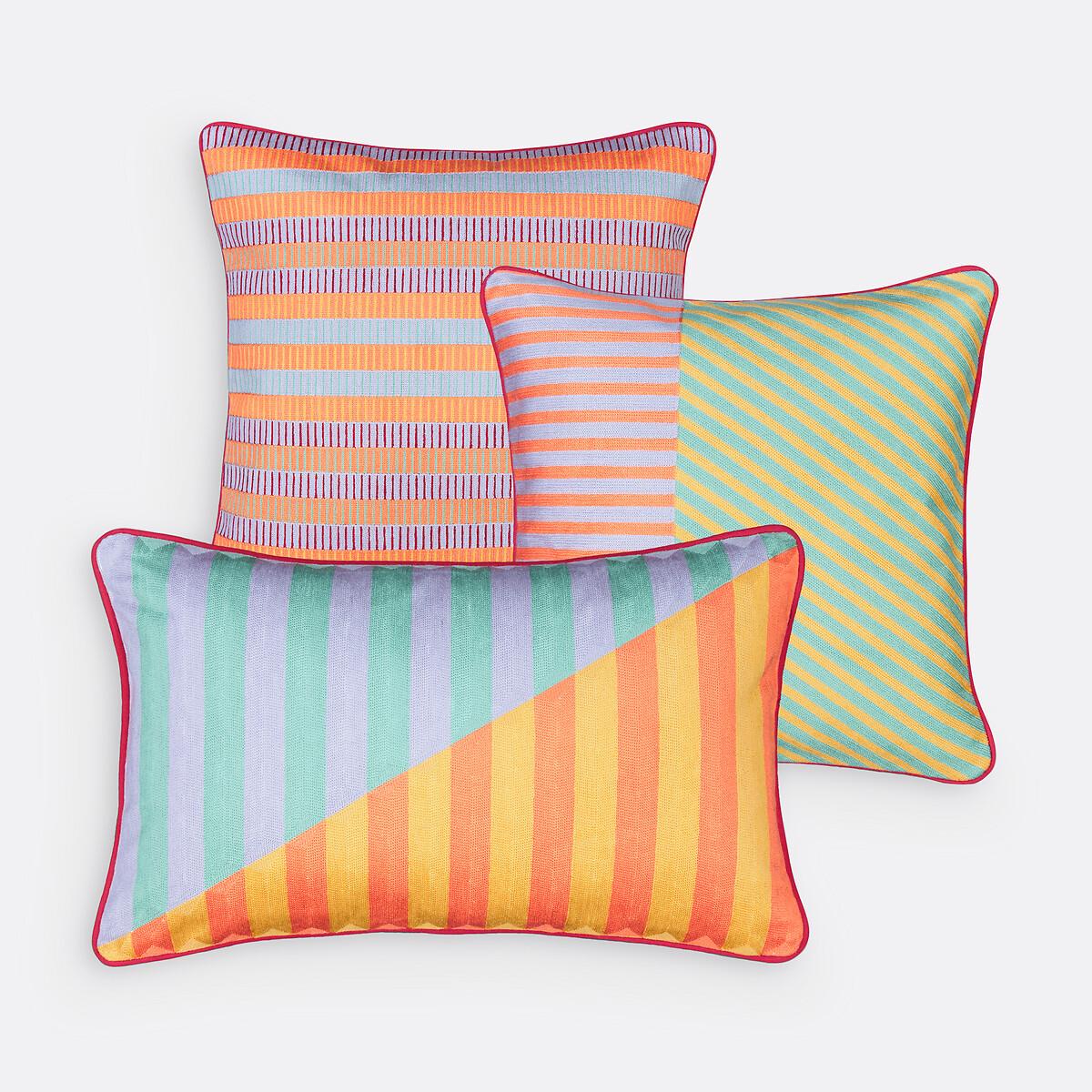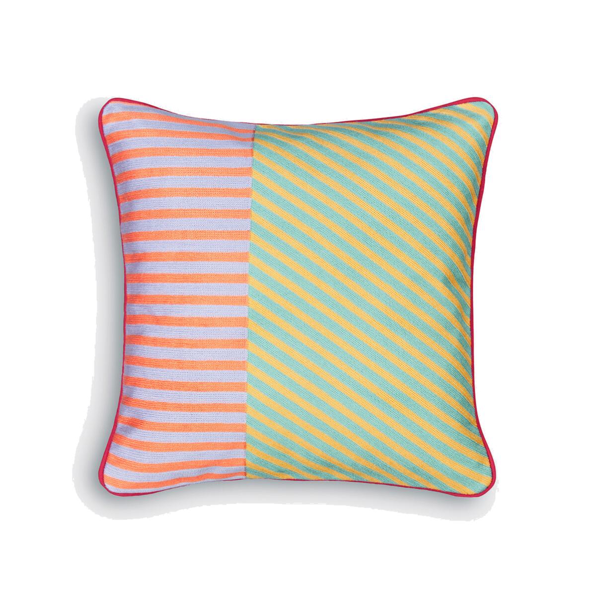 I love this cushion cover for its lively, contemporary look. The contrasting stripe pattern and fresh colour palette make it a versatile piece that can add interest to both neutral and colourful interiors. It works particularly well in modern or eclectic spaces, where a pop of pattern can elevate the overall look. For styling tips, consider pairing it with plain, solid-colour cushions for a layered effect, or stacking it on a neutral sofa to create visual interest. It's also a great size-45 x 45cm-making it perfect for lounges or bedrooms, and the durable fabric means it’s practical for everyday use. A smart choice for anyone wanting to inject a bit of colour with minimal effort.