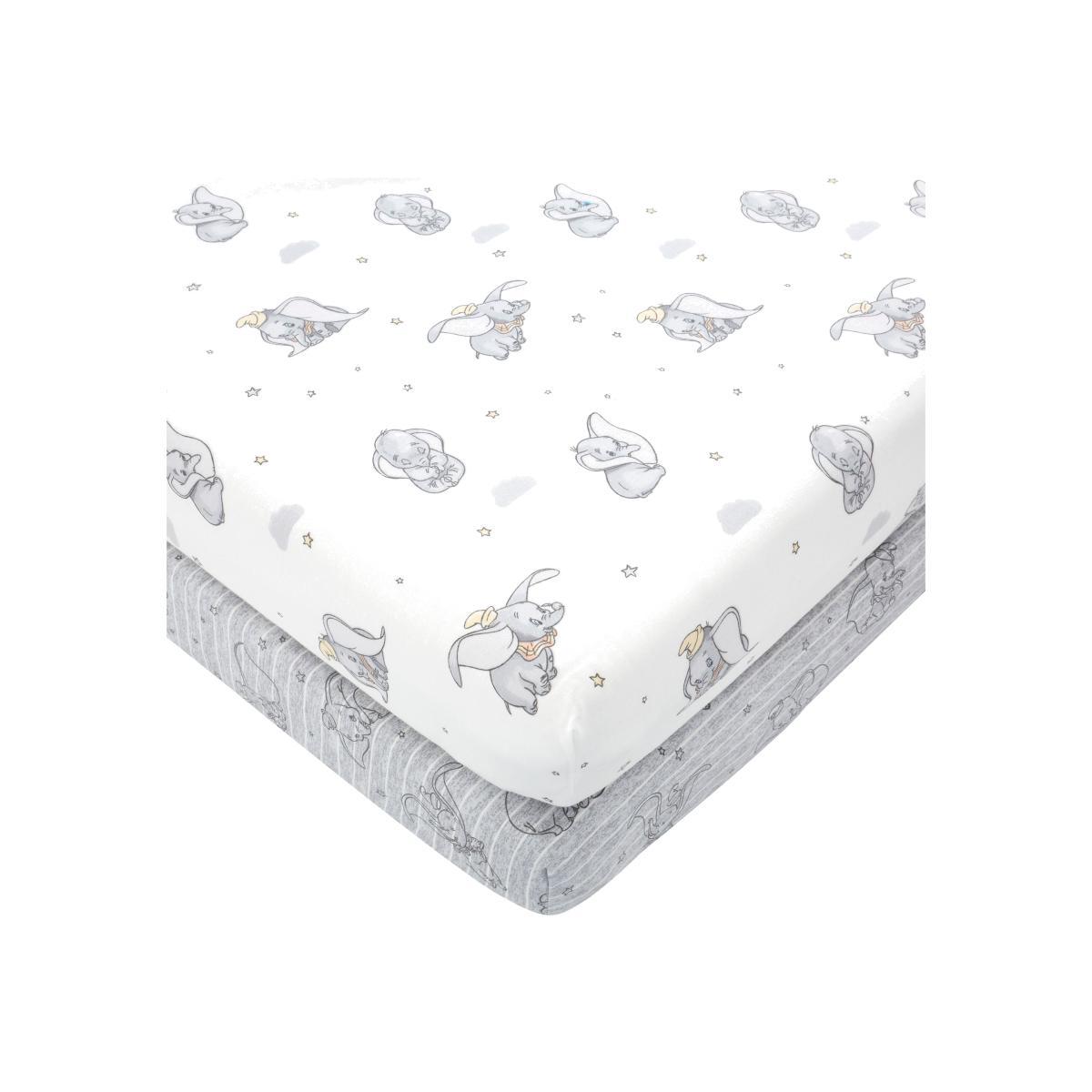 Dumbo 100% Cotton Pack of 2 Fitted Sheets Grey, Pink and White