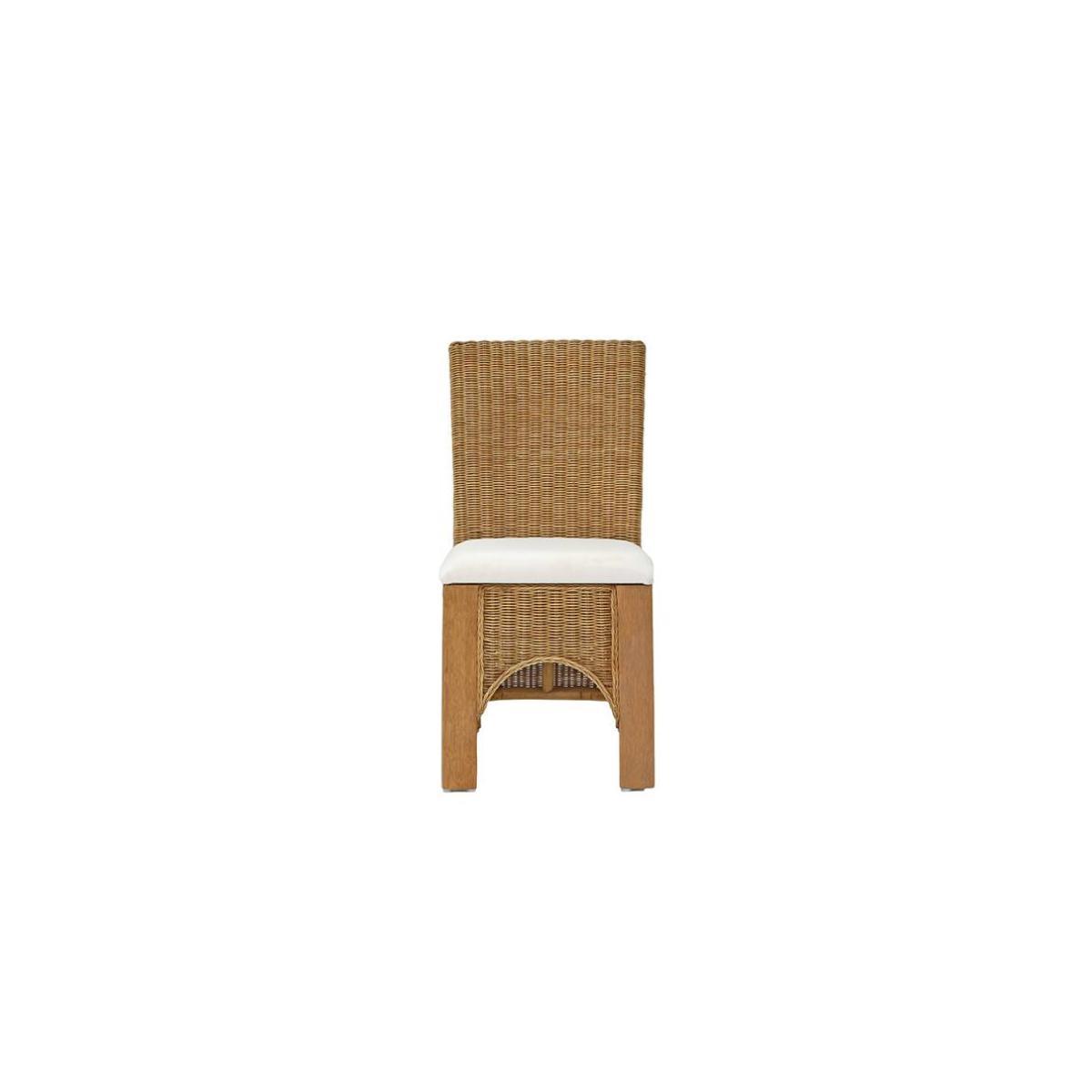 I’m a fan of the Dundee chair in natural wash for its woven texture and neutral tone - it adds a tactile layer without dominating the room. It works particularly well in coastal, Scandi or modern-farmhouse schemes, pairing effortlessly with a washed oak table and muted colour palette. For styling, swap the standard pad for a slim linen cushion in soft green or dusky rose, then ground the setting with a simple jute rug. Four around a solid-wood table creates a relaxed yet cohesive dining look.